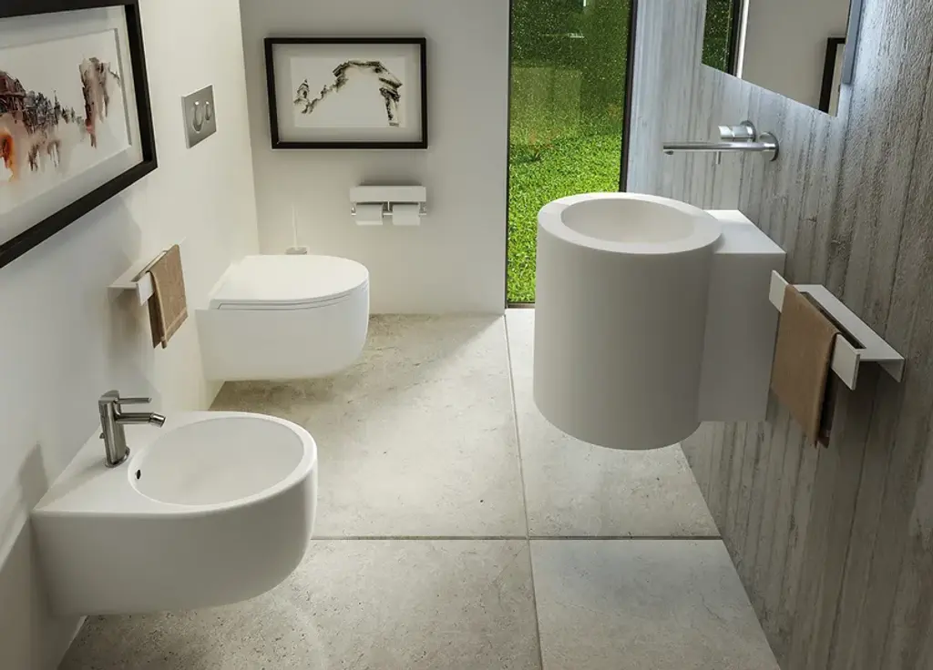 HALF TOWER 1-2Round single wall-mounted Solid Surface washbasin.