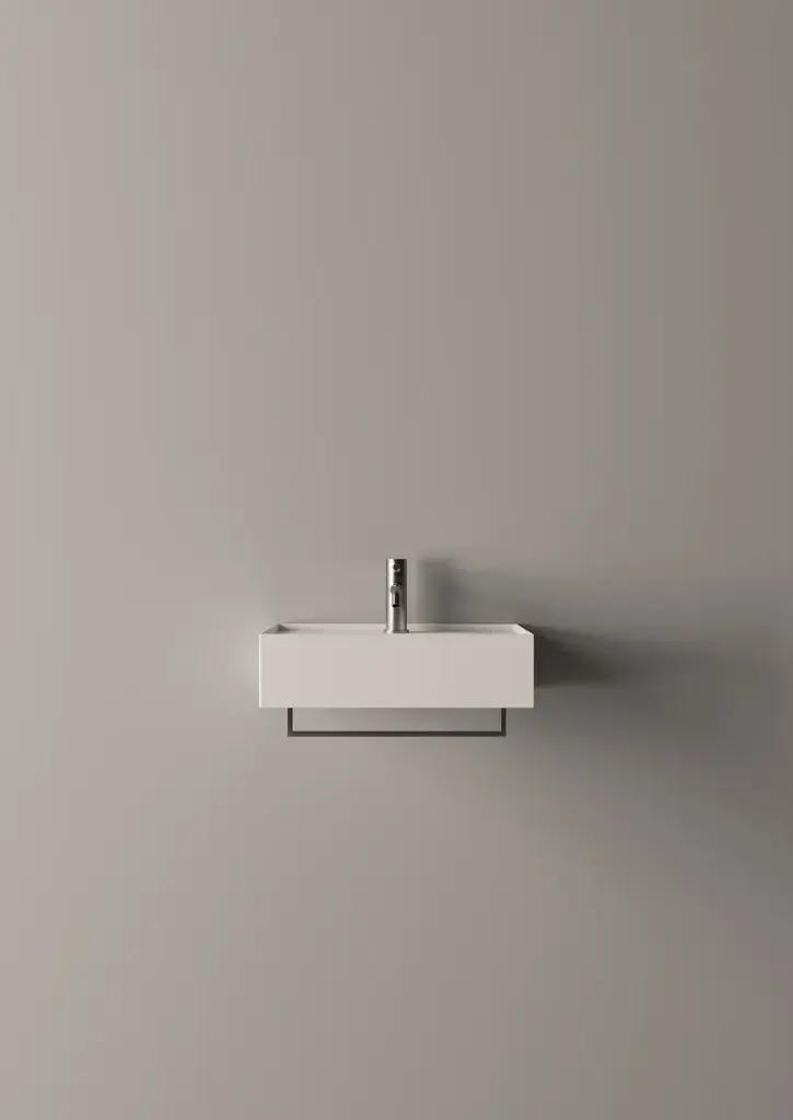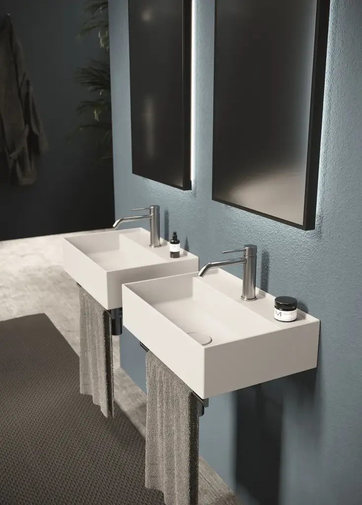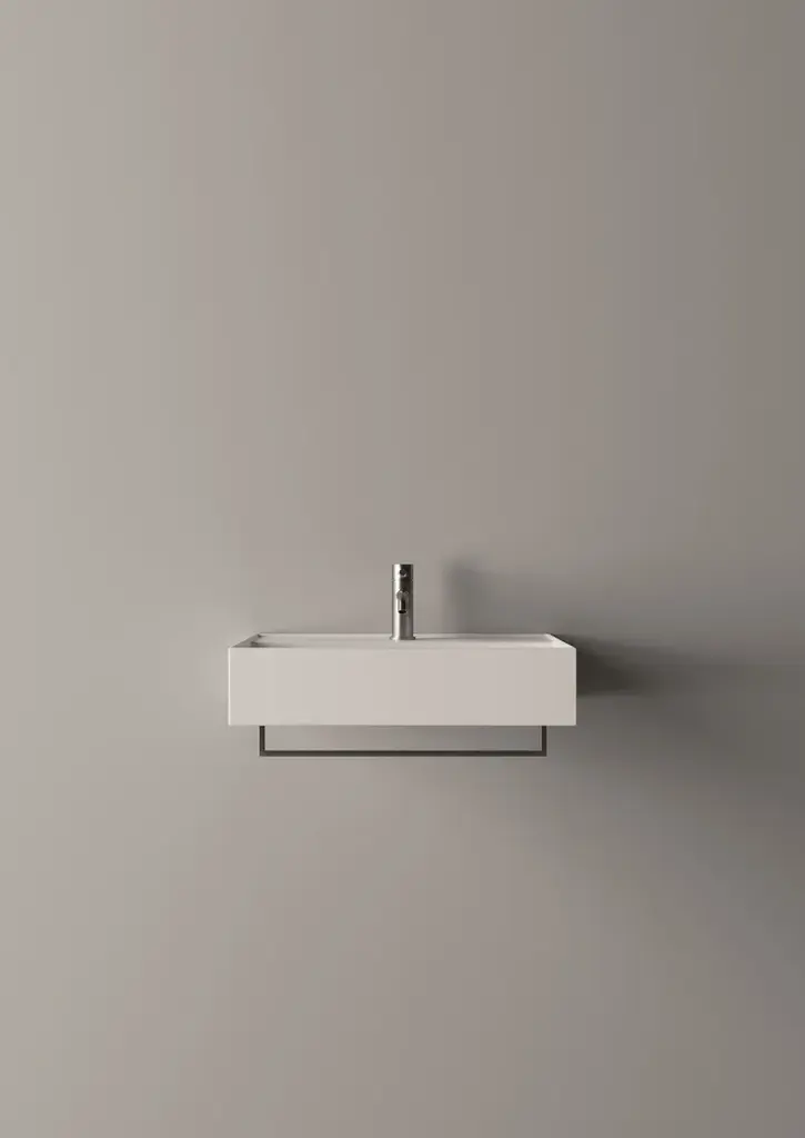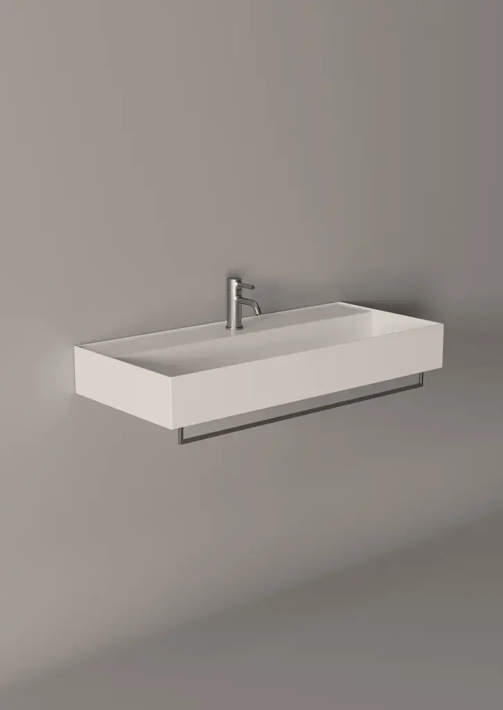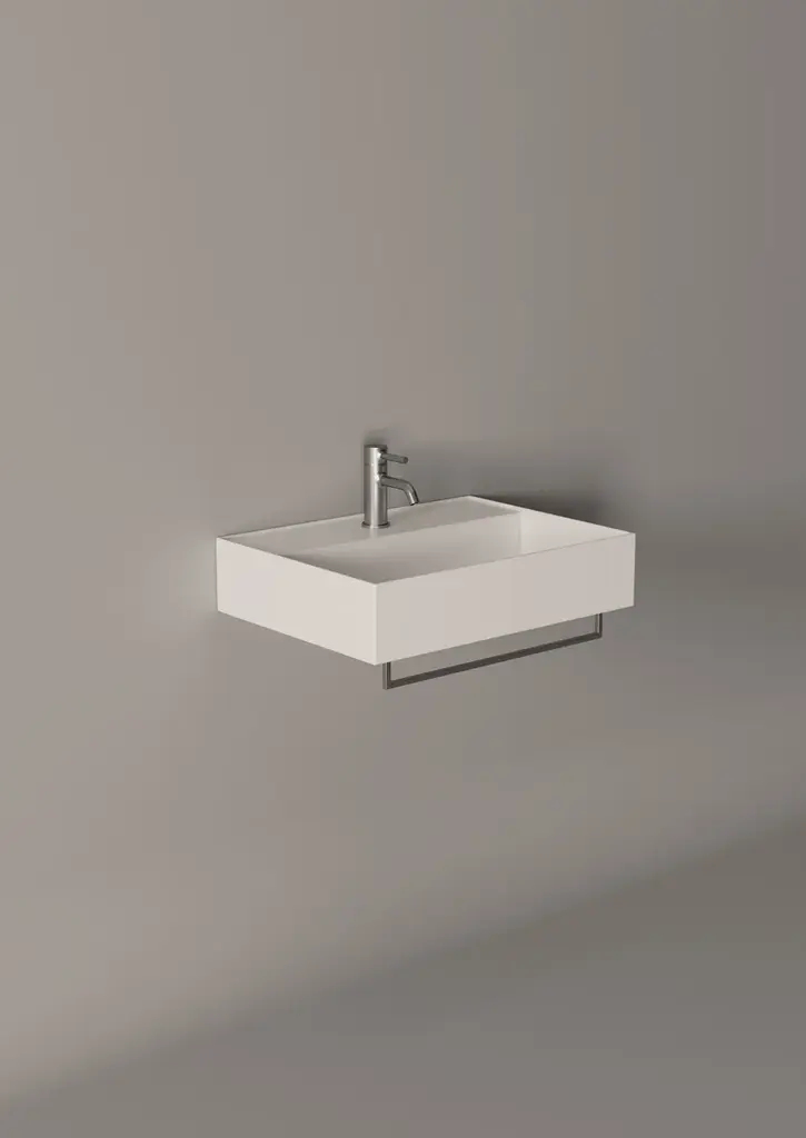 Hide is a rectangular wall-mounted ceramic washbasin. Towel rail not included.Purchasing information:Pop up plugs are not included and must be purchased separately (see product PIL06)One of Alice Ceramica’s most iconic collections. Steep curves and generous plans to be used in every bathrooms and for all necessities.And from today with a brand new modern touch, the practical towel holders.