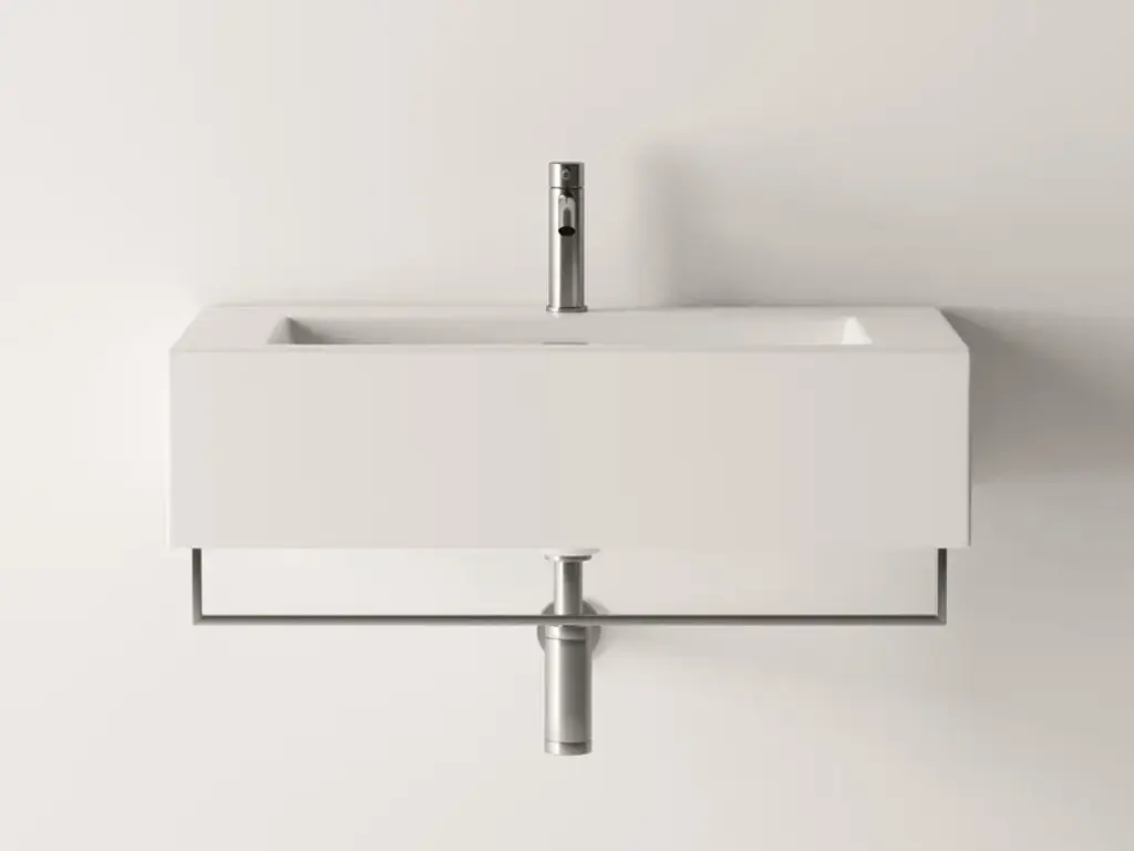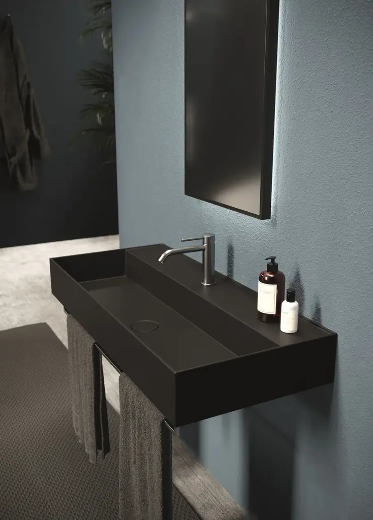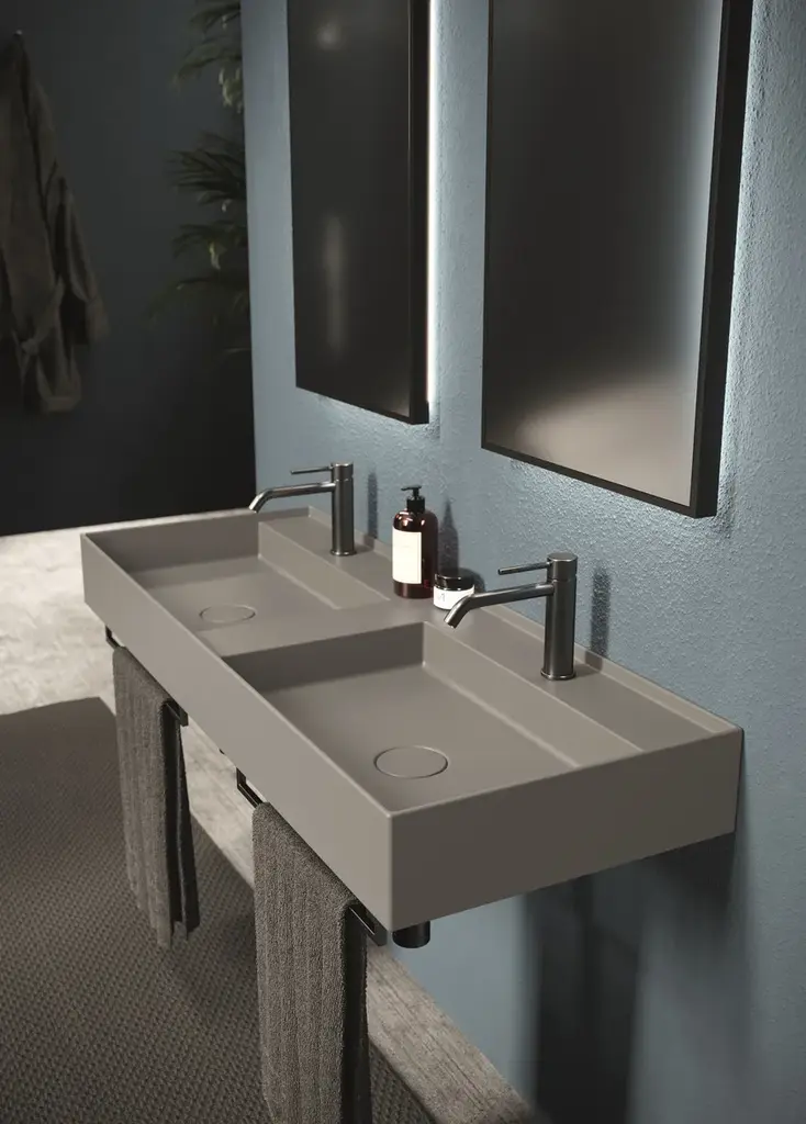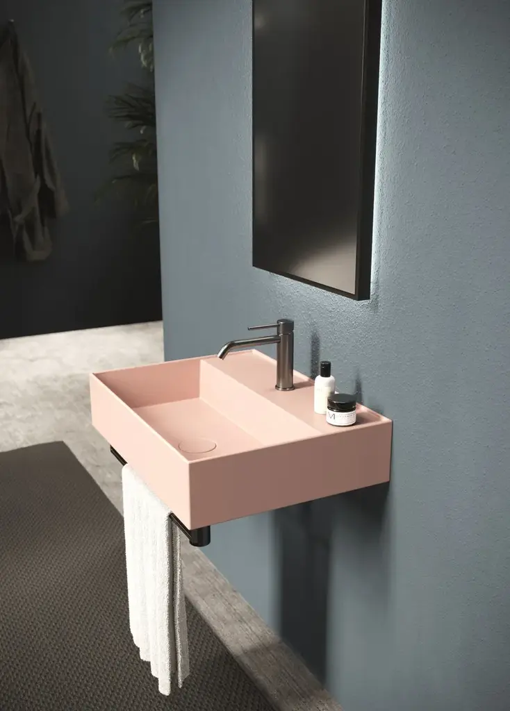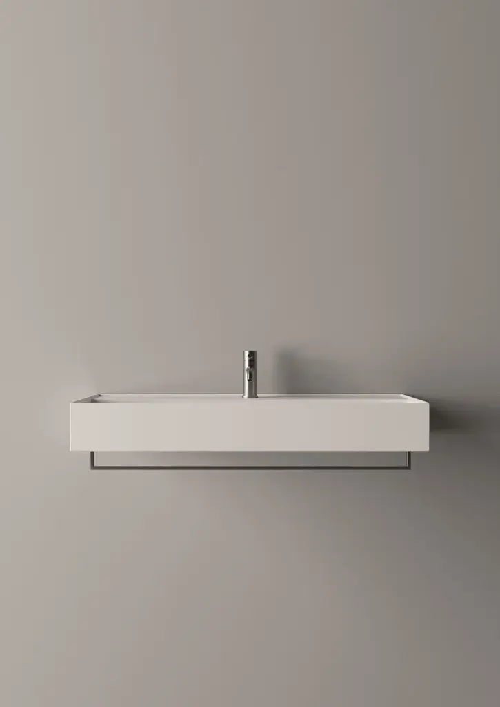 Hide is a rectangular wall-mounted ceramic washbasin. Towel rail not included.Purchasing information:Pop up plugs are not included and must be purchased separately (see product PIL06)One of Alice Ceramica’s most iconic collections. Steep curves and generous plans to be used in every bathrooms and for all necessities.And from today with a brand new modern touch, the practical towel holders.