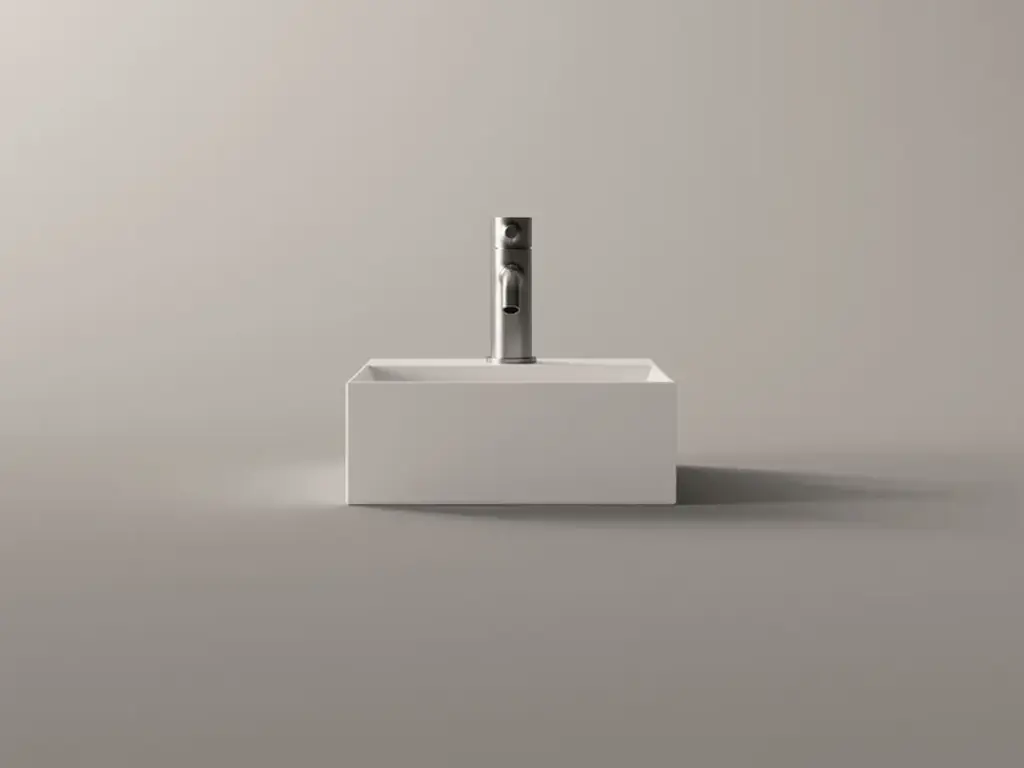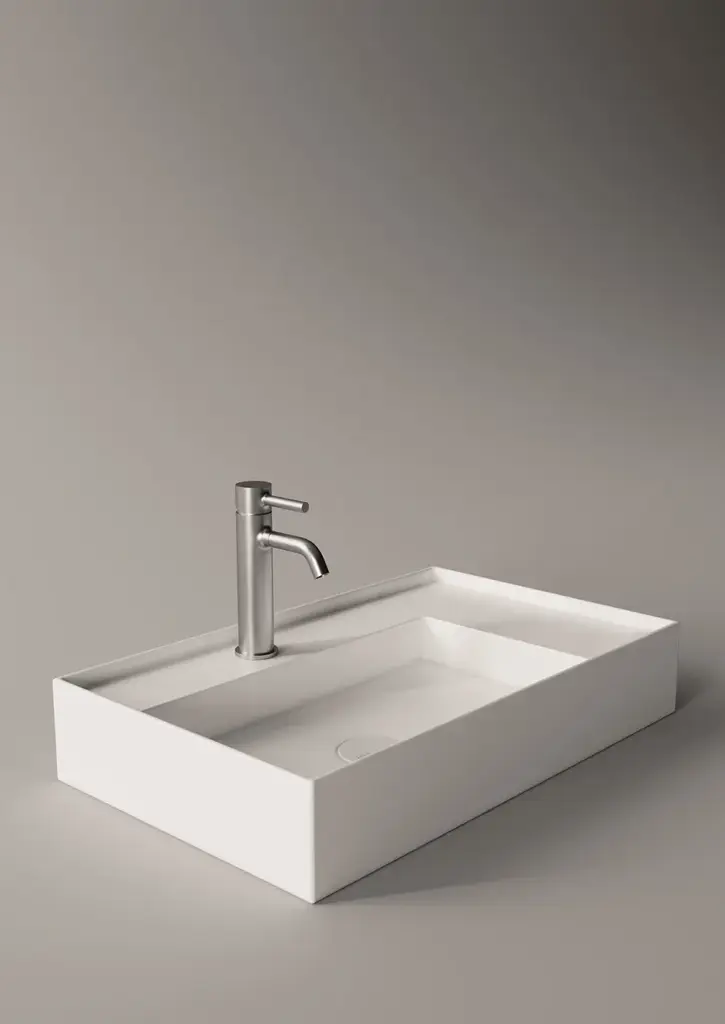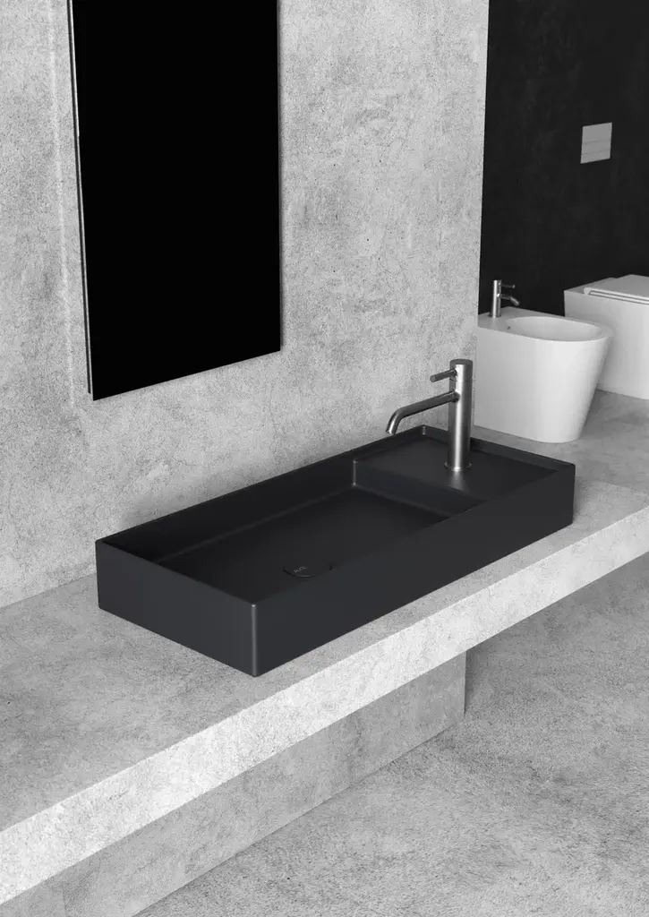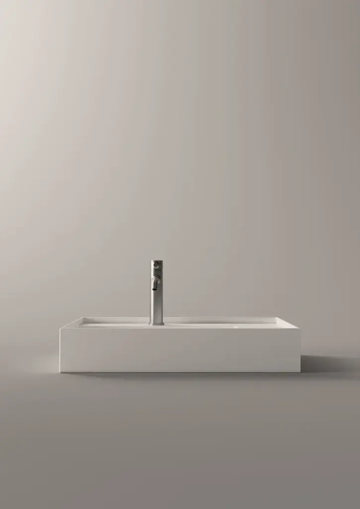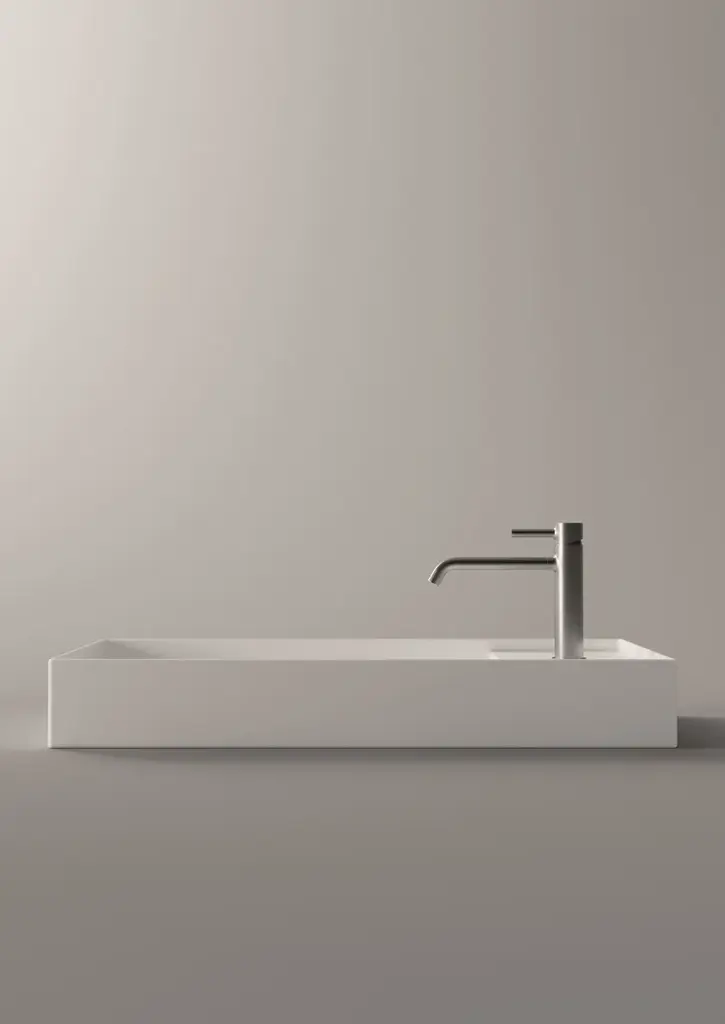 Hide is a countertop rectangular ceramic washbasinPurchasing information:Pop up plugs are not included and must be purchased separately (see product PIL06)One of Alice Ceramica’s most iconic collections. Steep curves and generous plans to be used in every bathrooms and for all necessities.And from today with a brand new modern touch, the practical towel holders.