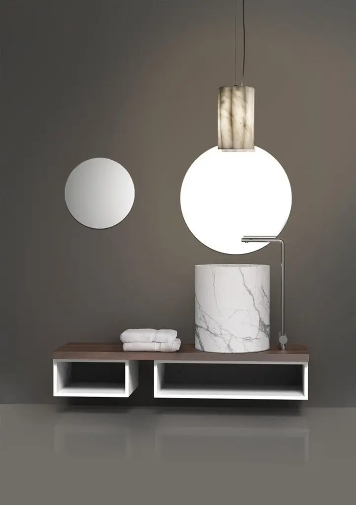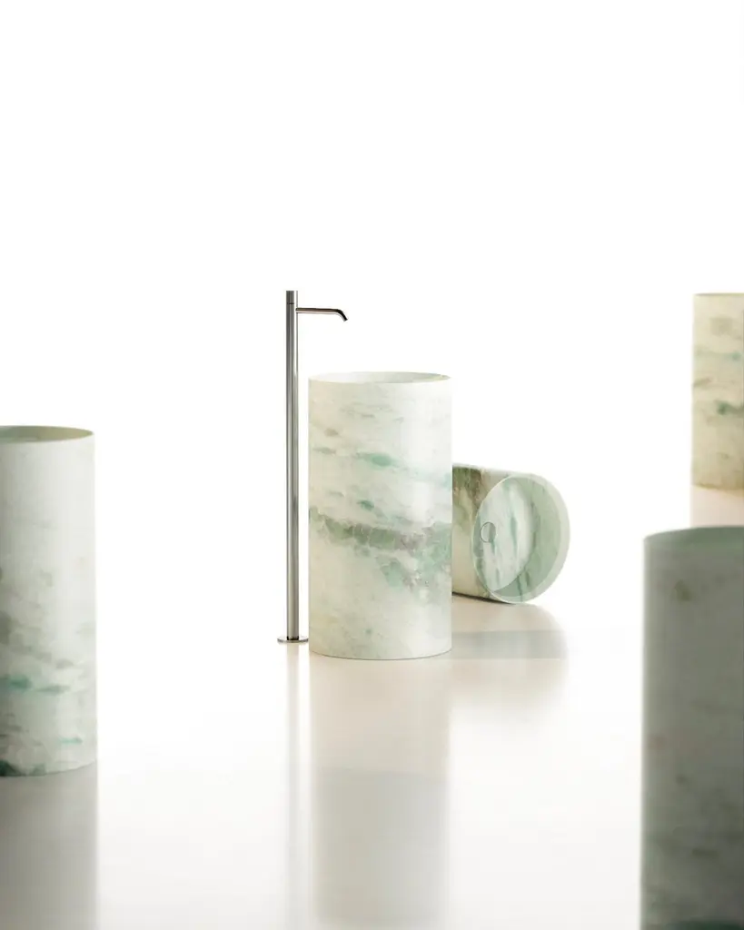 High entity circle washbasin by Marmi SerafiniMaterials: Pinta Verde marble.Dimensions: D 45 x H 85 cmAvailable in other marbles and in 3 sizes: H 20, H 50, H 85 cm.Tap not included.Available in a classic version with the traditional drainpipe, or more modern with stone drainpipe. Ideal position for this piece is the center of the room, slightly away from the wall.Marmi Serafini is located in a small city named Chiampo, internationally well known for its marble production.It's origins stem from Mr. Bruno Fortunato's passion for marble which was then passed on to his two sons, Alessandro ad Luca, who eventually took over.Marmi Serafini has, with the passing of time, transformed into one of the most innovative marble factories, producing extremely design-driven products and objects.