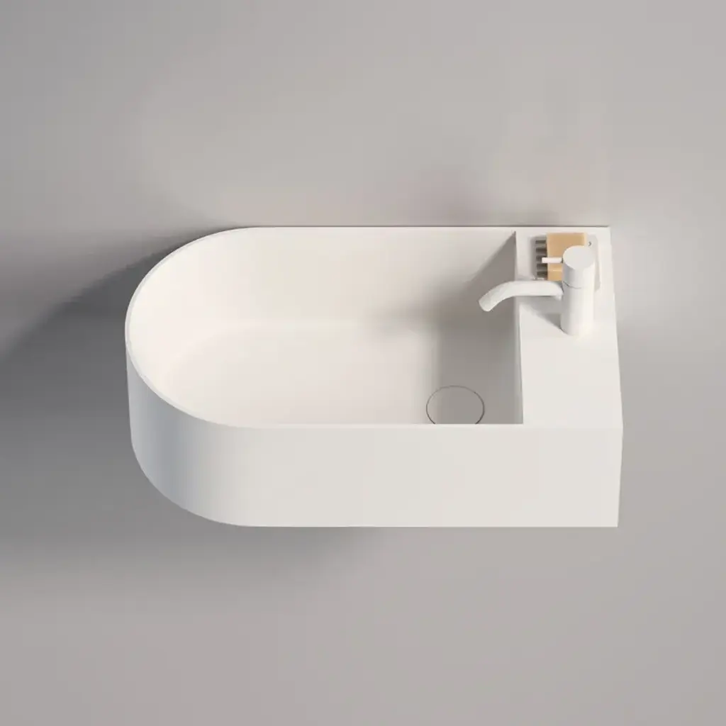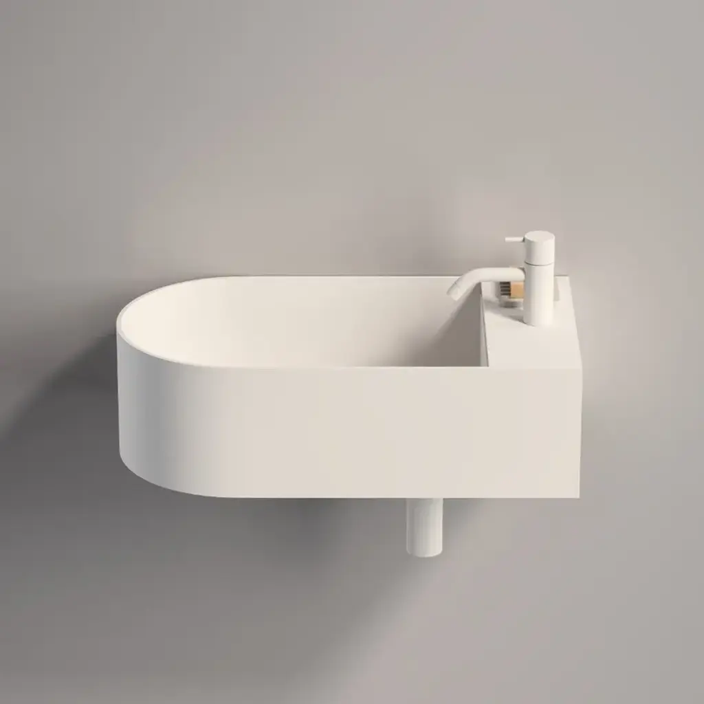 KANAL BASIN is a basin in Acovi®, available in white colour.Inspired by Copenhagen’s serene canals, the Kanal Basin is a tribute to Danish maritime culture and refined design.Crafted from Acovi® Solid Surface, this basin features graceful curves and a versatile design, allowing it to be installed either to the left or right to suit any bathroom layout. Its clean, minimalist silhouette echoes the fluidity of water and the balance between man-made structures and nature.The Kanal Basin is more than a functional element—it is an iconic piece designed to elevate daily rituals. Its smooth, non-porous surface resists stains and scratches, ensuring durability and easy maintenance. Whether mounted on a countertop or paired with a cabinet, the basin integrates seamlessly into the bathroom, creating a tranquil and harmonious atmosphere. With the Kanal Basin, Copenhagen Bath and Johannes Torpe Studios invite you to experience the beauty of thoughtful design, turning your bathroom into a personal retreat.Info:-Waste and trap are not included.-The basin has no faucet hole. A free drilling can be added to your order.-Mounting brackets included.-10-year guarantee on Acovi® products against internal breakage and color fastness.