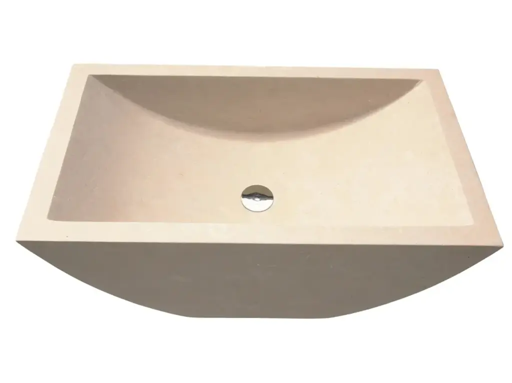 L1 is a washbasin made in Limestone robot manufacturing handmade finishing. The sink is characterized by the spout on the left side with a hole in the center for the reflux of water, while on the right there is a countertop also in Lecce stone. The color of the washbasin is beige, typical of the Lecce stone with different colored veins for each work created, due precisely to the heterogeneous characteristics of the Lecce stone.
