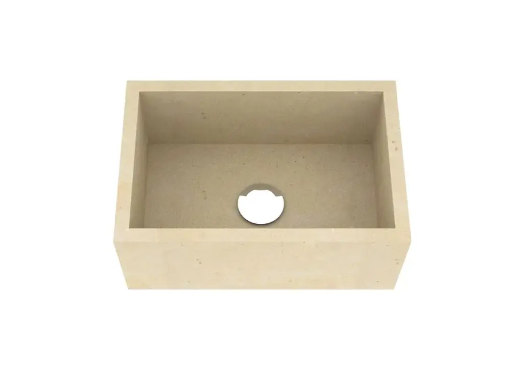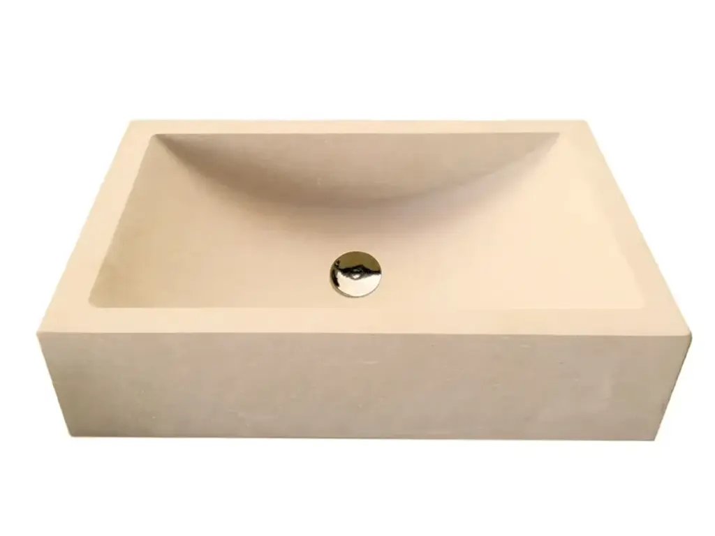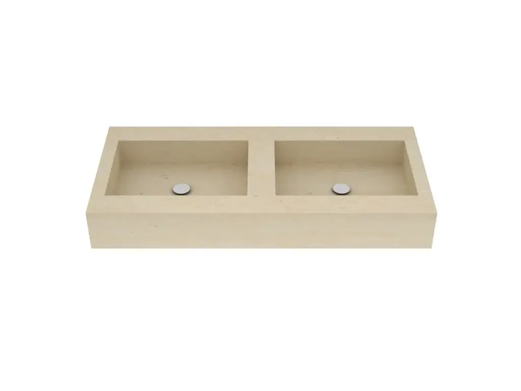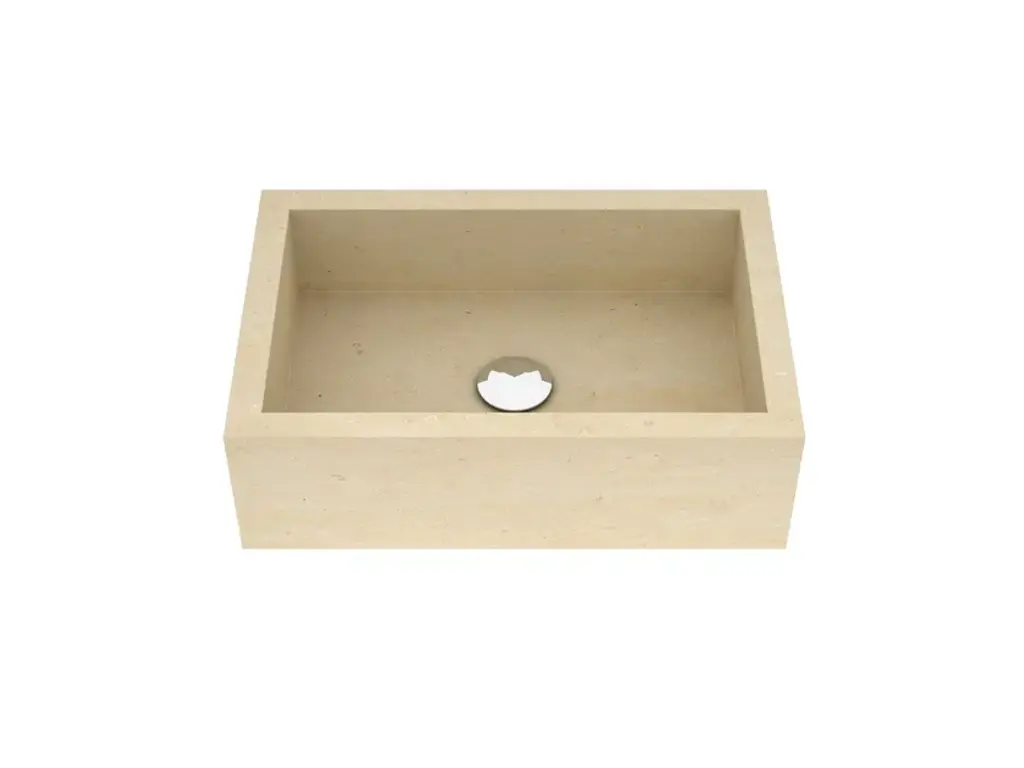 L17 is a robot-worked and hand-finished Lecce stone washbasin. The design of this element is particularly geometric, in fact it is a square that fits well in bathrooms with a contemporary style. The color is beige, classic of the Lecce stone.