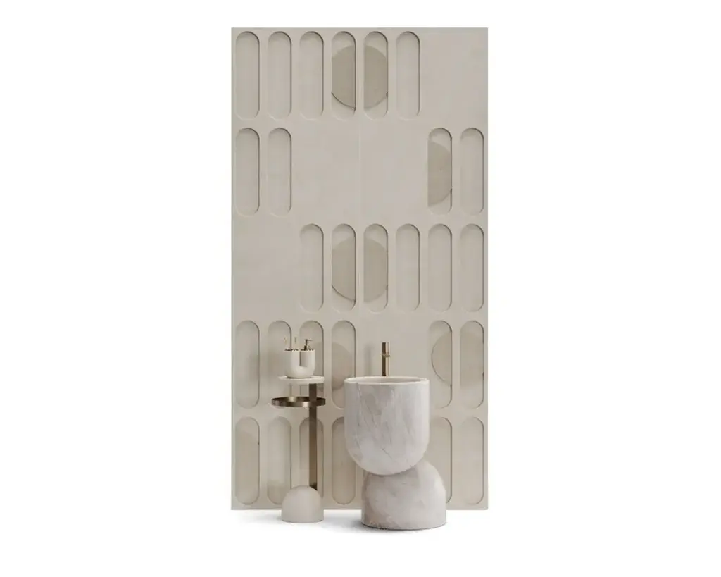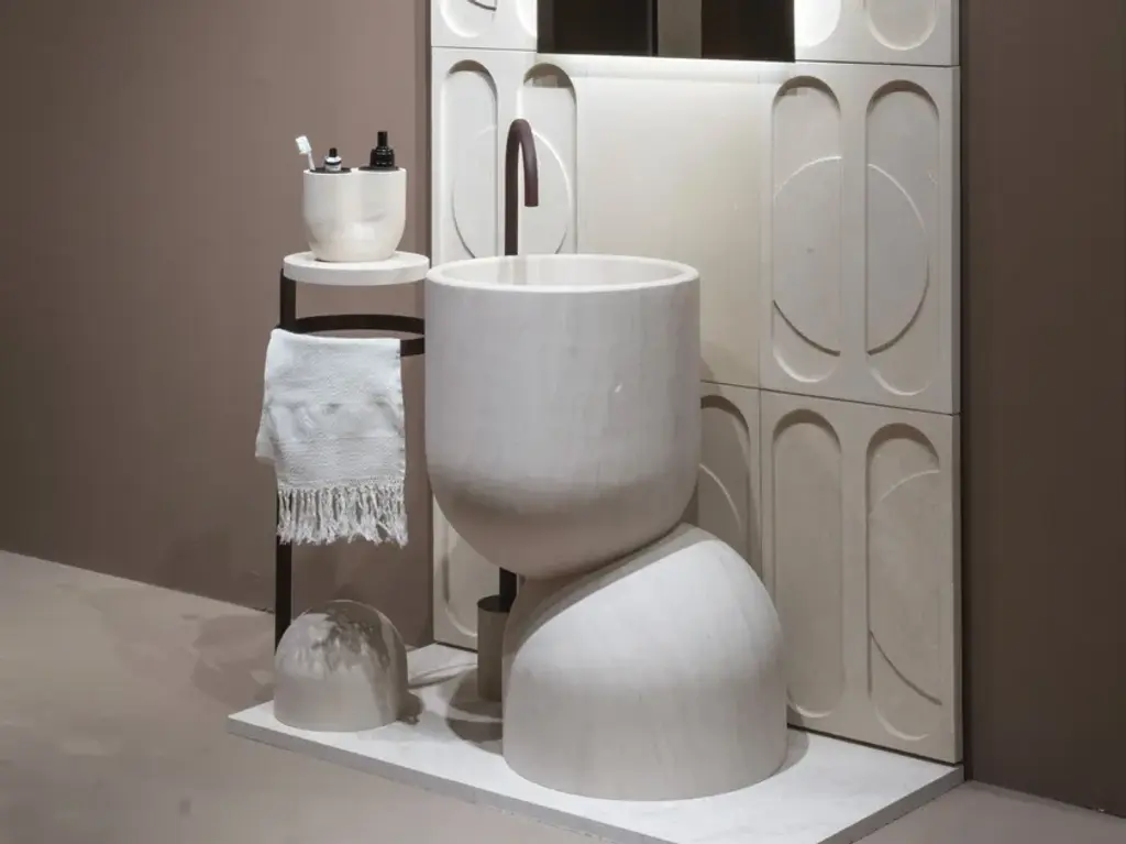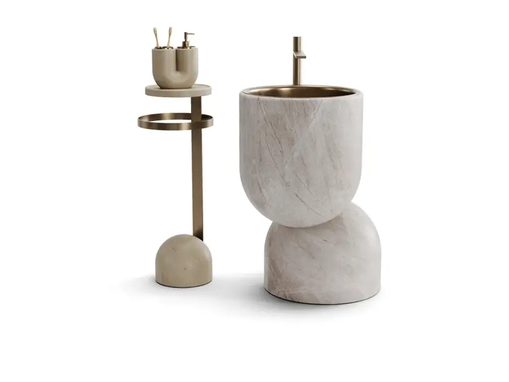 L27 - Maat is a freestanding washbasin made in Limestone robot manufacturing handmade finishing.