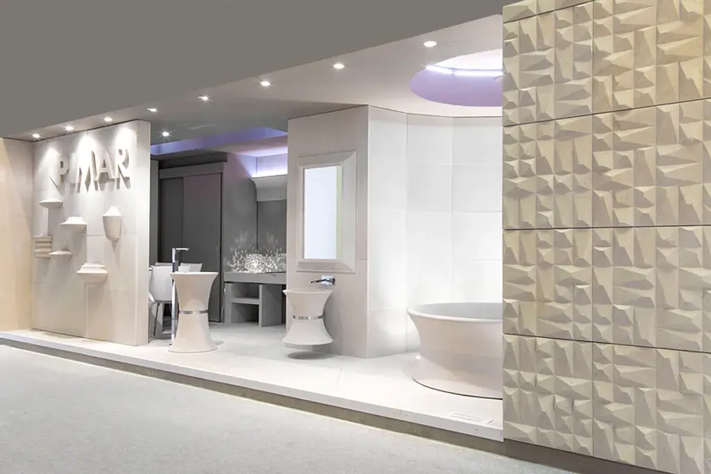 L5 is a free-standing washbasin made of leccese stone worked on a lathe and finished by hand. The design is the work of the artist Luca Scacchetti, who takes the shape of an hourglass resting on the ground. The water falls from above from a mixer that runs along the entire length of the sink and surmounts it from above, creating a cascade effect. It features a metal band in the center, where the sink chokes in its hourglass shape. Thanks to this design it turns out to be a decorative element of the bathroom as well as a real sink.