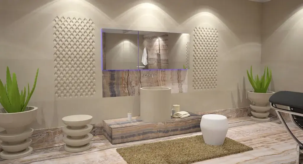 L7 is a free-standing washbasin in Lecce stone designed by the artist Luca Scacchetti, worked on a lathe and then finished by hand in the Pimar workshops. The washbasin has a beige color, typical of the Lecce stone, whose color has not been changed in order not to lose the naturalness of the stone.