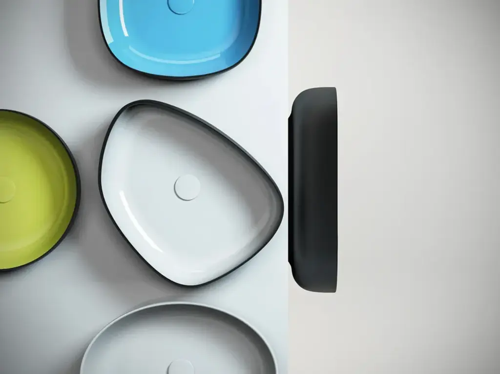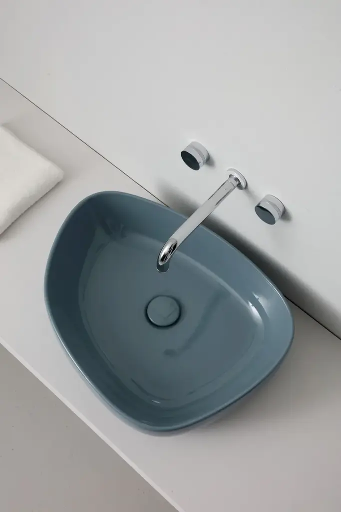 Metamorfosi is a shapeless countertop washbasin in ceramic.The new range of Olympia counter top basins is focused to satisfy all the bathroom spaces with functional and aesthetic needs. Metamorphosis basins take their name from their skill of transformation, that is starting from a circle and passing through intermediate shapes, to arrive at the last rectangular basin that concludes the range. The company works to design and produce five new solutions that have as purposes quality, price and in the meantime design. The basins are different in sizes and shapes, and guarantee a cutting edge stylish efficiency inside the bathroom. All Metamorfosi Washbasins will be delivered with pop up waste and ceramic pop up waste cover without any logo.Colors might vary slightly due to the manifacturing process.