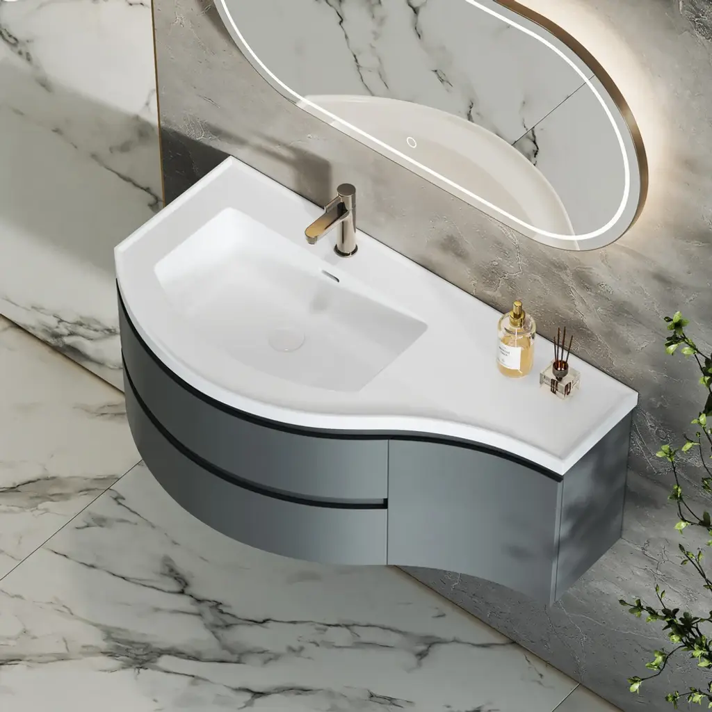 SYSTEM DESK 60 - Inset rectangular washbasin with integrated countertop.Material: white Stonage®