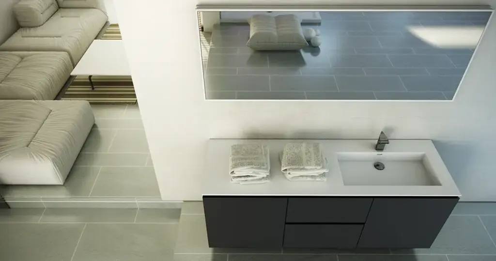 MODUL DESK 60 - Rectangular washbasin with integrated countertopMaterial: white Stonage®