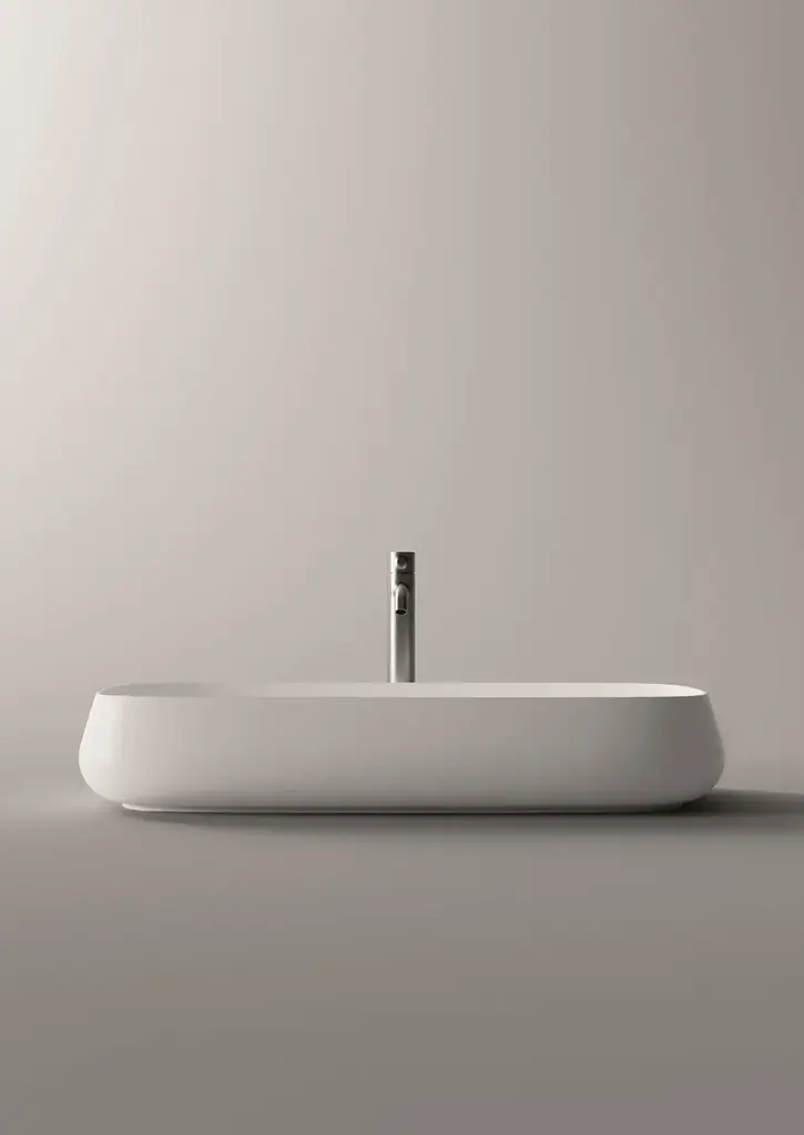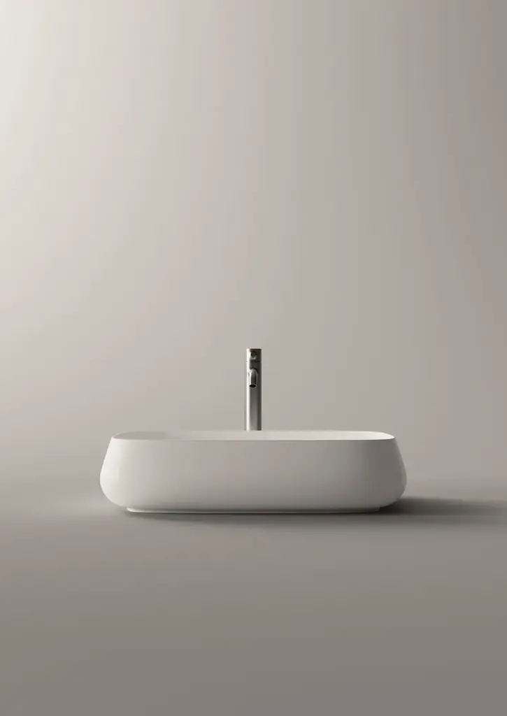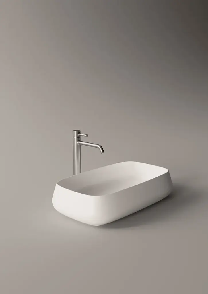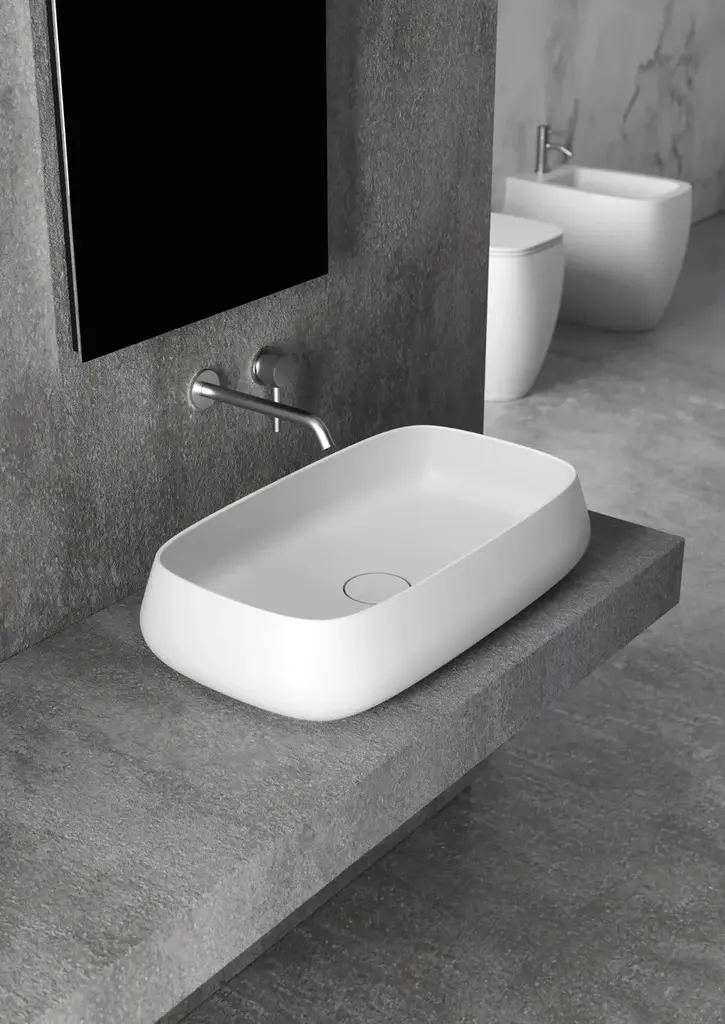 Nur is a countertop rectangular ceramic washbasin.Purchasing information:Pop up plugs are not included and must be purchased separately (see product PIL06)Alice Ceramica would like to introduce you to its newest collection: NUR.NUR collection is the pinnacle of Italian sanitary-ware engineering and design. Art director and designer Massimiliano Braconi crafted an impossible bend, never seen before in porcelain-made washbasins. The collection marks a new beginning of Alice as a pioneer of innovative design mixed with art and engineering advancements, bringing the company among the industry leaders as a key player in the sanitary-ware business.The edges of the NUR washbasins require the classical “poured-in mold” process to be revisited to accommodate the “sottosquadro” bend of the curve. Our artisans have to intervene and gradually remove the chalk molds by hand to allow a multi-stage drying process. The negative curve of the edge represents the new aggressive and ambitious attitude of Alice Ceramica.