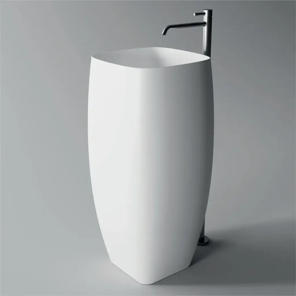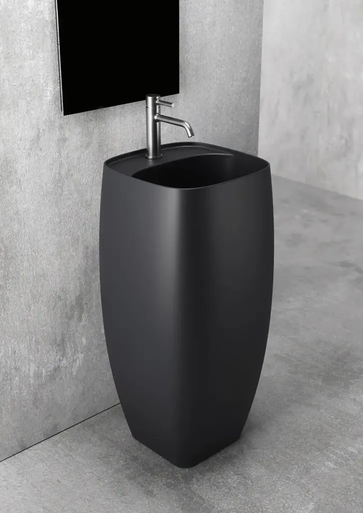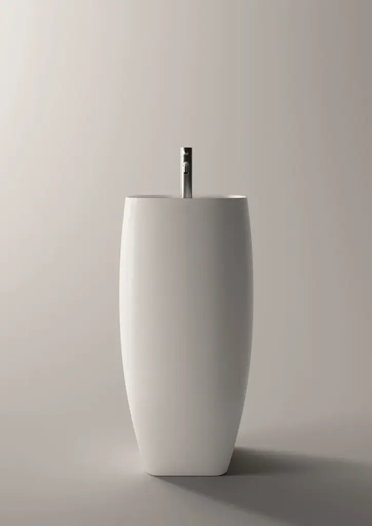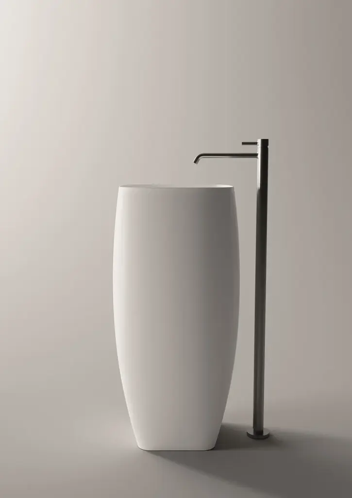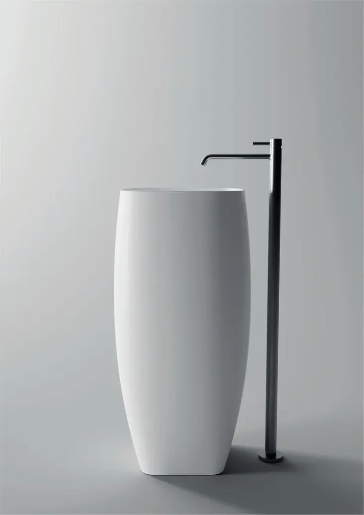 Washbasin freestanding Nur with tap planPurchasing information:Pop up plugs are not included and must be purchased separately (see product PIL06)Alice Ceramica would like to introduce you to its newest collection: NUR.NUR collection is the pinnacle of Italian sanitary-ware engineering and design. Art director and designer Massimiliano Braconi crafted an impossible bend, never seen before in porcelain-made washbasins. The collection marks a new beginning of Alice as a pioneer of innovative design mixed with art and engineering advancements, bringing the company among the industry leaders as a key player in the sanitary-ware business.The edges of the NUR washbasins require the classical “poured-in mold” process to be revisited to accommodate the “sottosquadro” bend of the curve. Our artisans have to intervene and gradually remove the chalk molds by hand to allow a multi-stage drying process. The negative curve of the edge represents the new aggressive and ambitious attitude of Alice Ceramica.