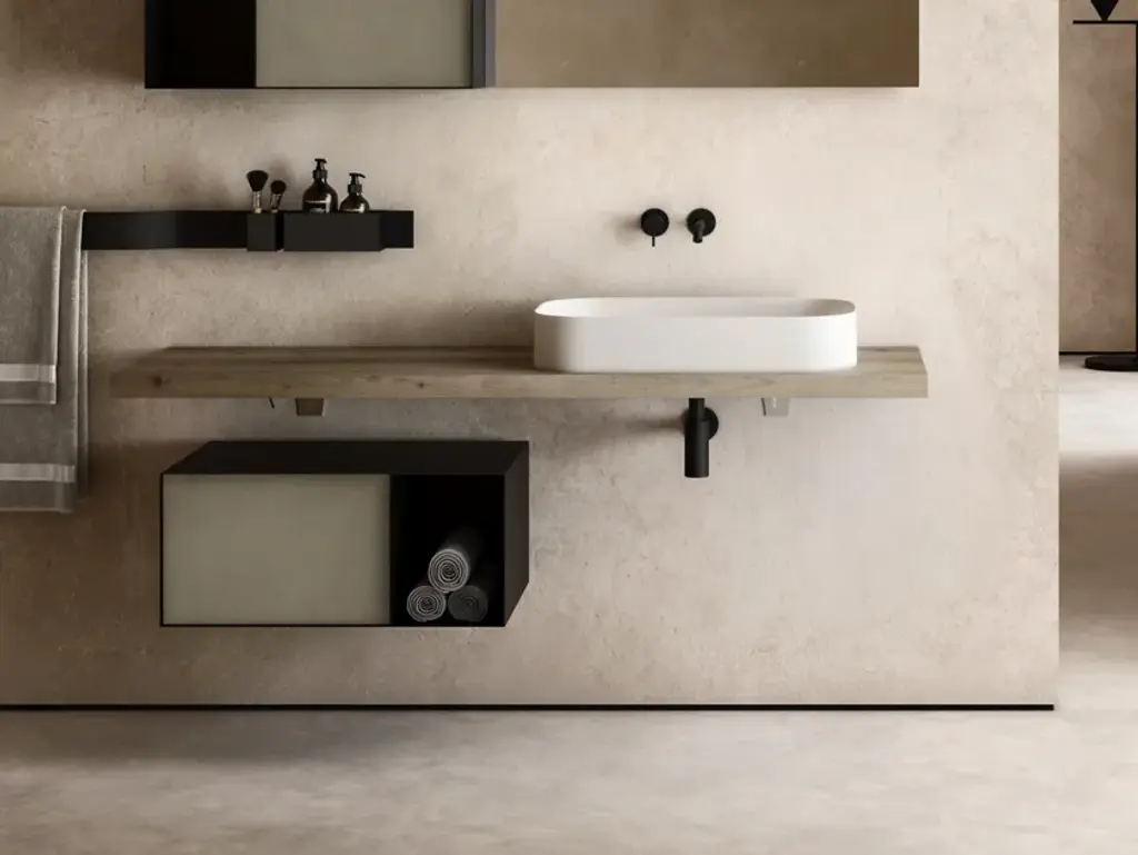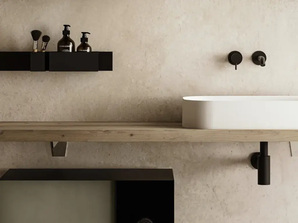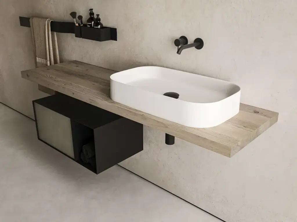 Plank is a suspended washbasin top ideal for countertop washbasins available in “reused” wood. The Plank top can be completed with Block H.24 and Zero20 furniture.The aesthetic canon of this furnishing proposal expresses an idea of beauty in the form of understatement: products evoking refined, apparently spartan, neo-industrial atmospheres in sophisticated realities. Varnished stainless steel sinks, re-used wood tops, light pierced metal sheet tops are the components of this line of industrial matrix, both for the materials of choice and for the shapes. Contemporary interpretation of an informal style reflecting low-tech choices. Friendly objects that, in the simplicity of the revealed function, give the environment where they are inserted a specific identity.
