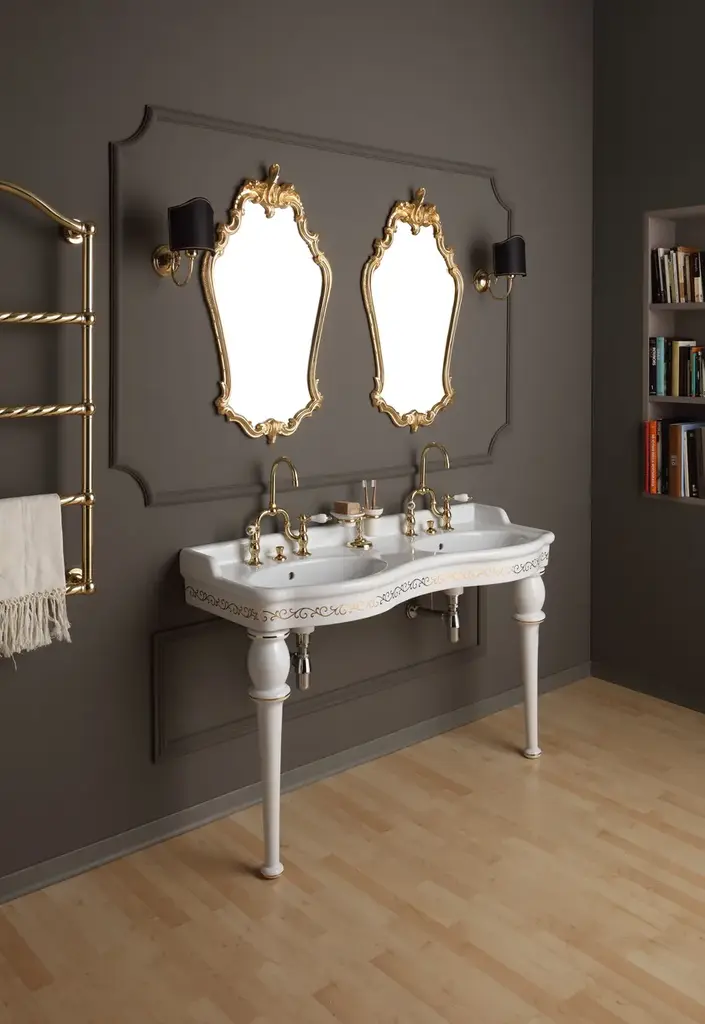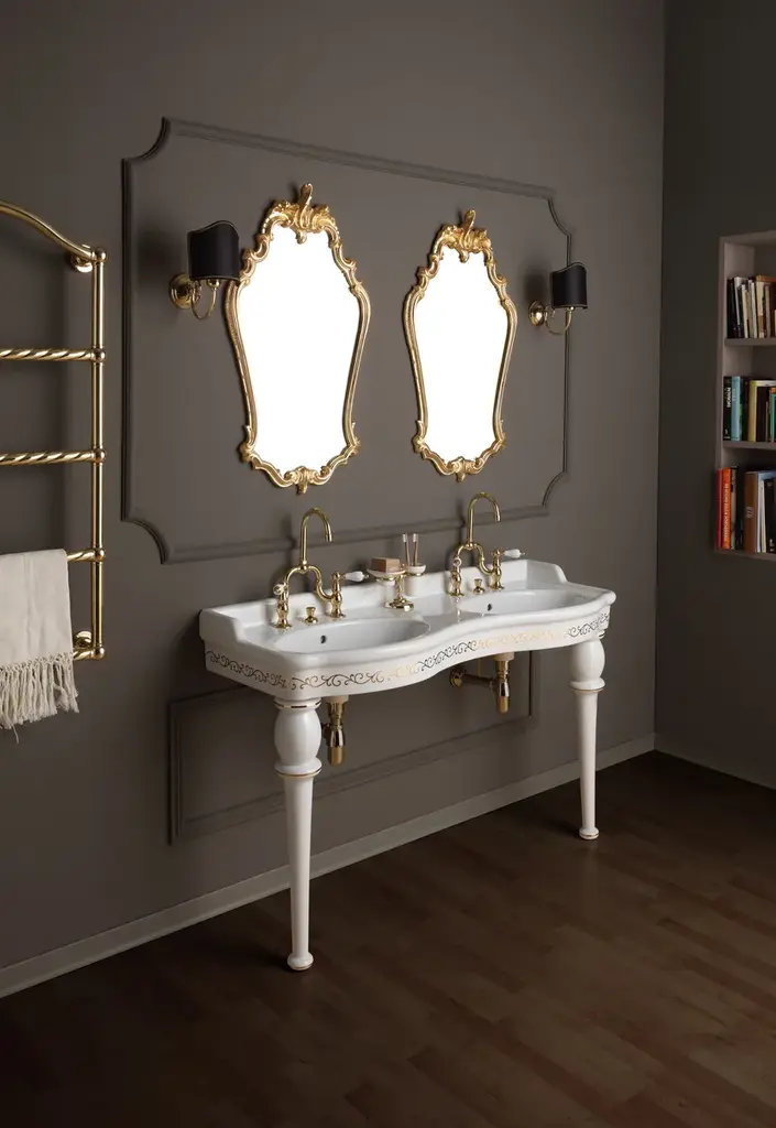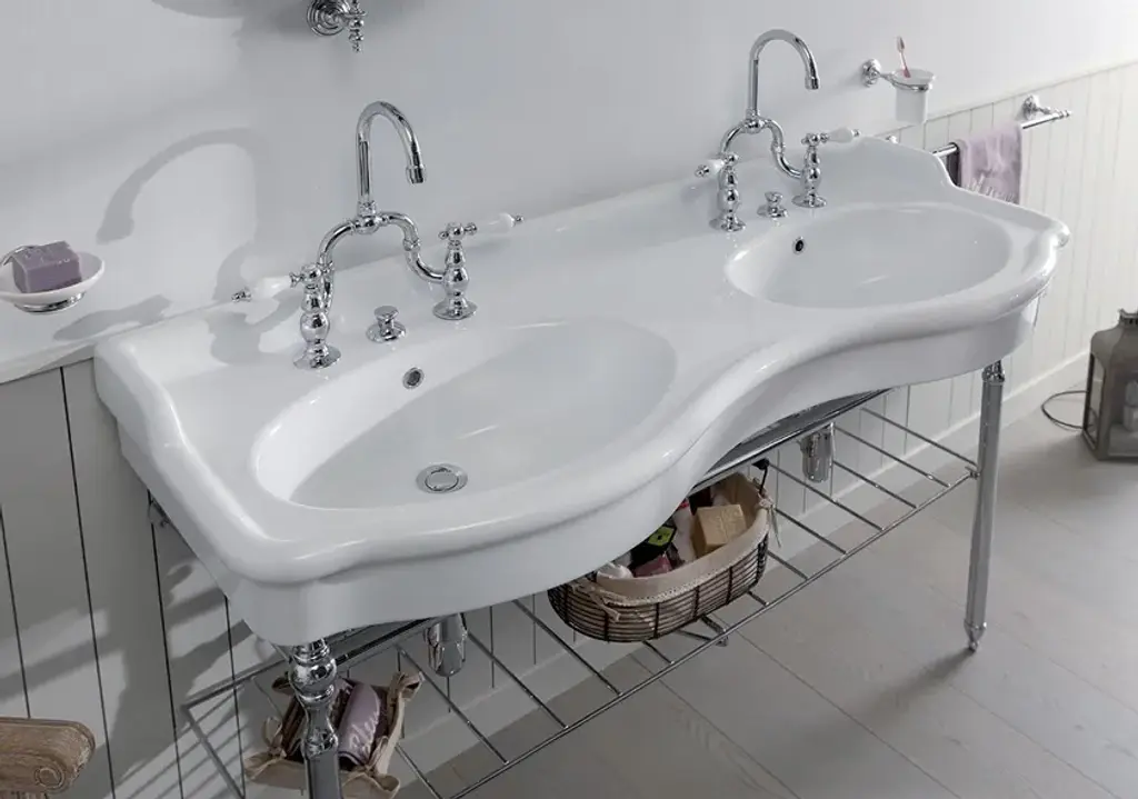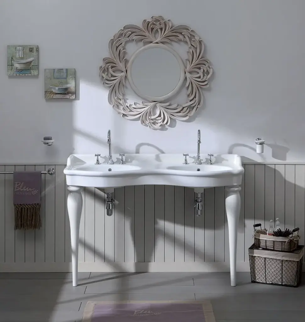 The Provence'800 ceramic washbasins are the symbol of the retro chic and luxury of the 1900s of the belle epoque. They exist with many matt or shiny colors (old white, black, gray, dark and light brown, ...) and in several sizes (from small to double: 65 to 140cm).
