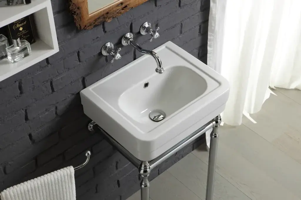 The Provence'900 ceramic washbasins are the symbol of the retro chic and luxury of the 1900s of the belle epoque. They exist with many matt or glossy colors (old white, black, gray, dark and light brown, ...) and in several sizes (from vanity to double: 50 to 130cm).