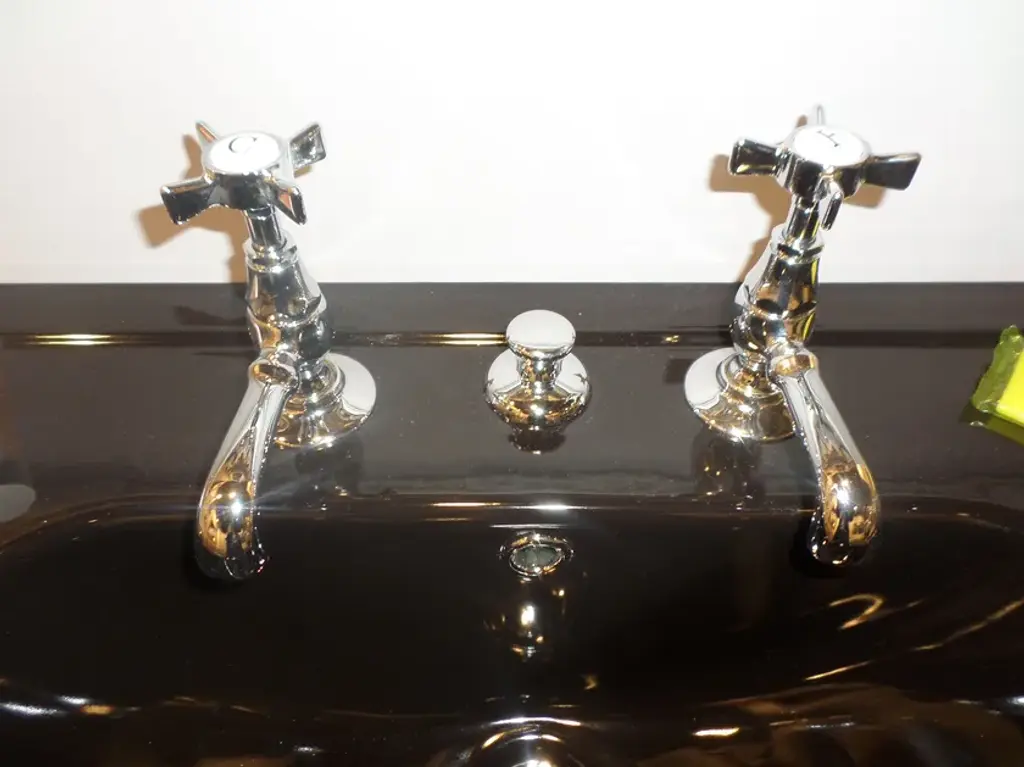 RL100 - Low single tap chrome.Large choice of high quality classic faucets in brass for washbasins with 1 or 3 holes and mixer. Several metal finishes available. Various handles available.