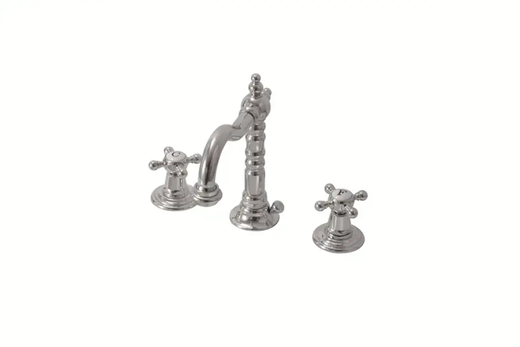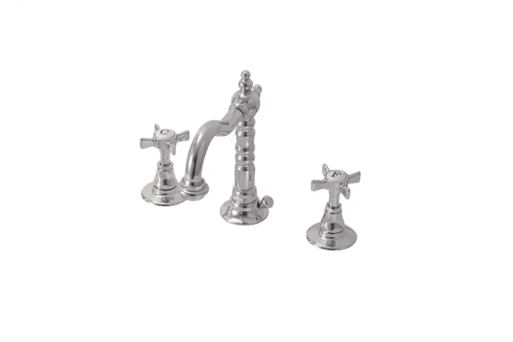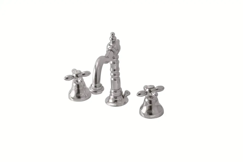 RL103 - Washbasin Tap Mid level neck 3 holes.Large choice of high quality classic faucets in brass for washbasins with 1 or 3 holes and mixer. Several metal finishes available. Various handles available.