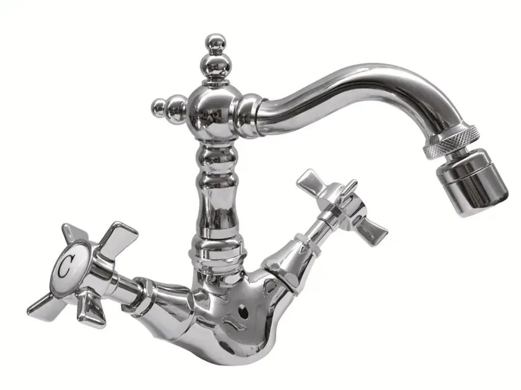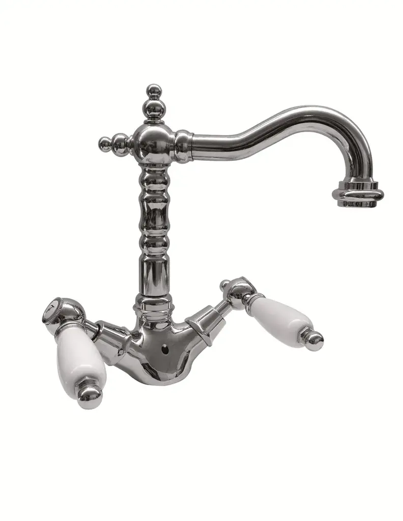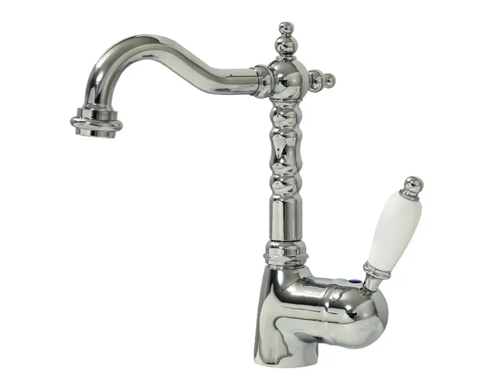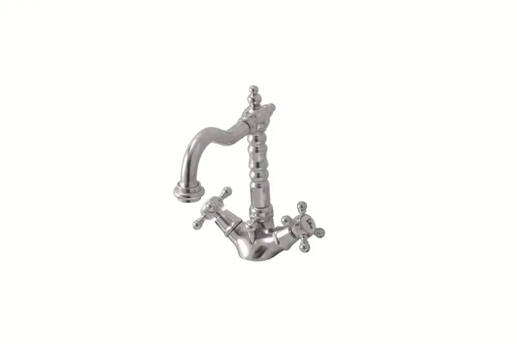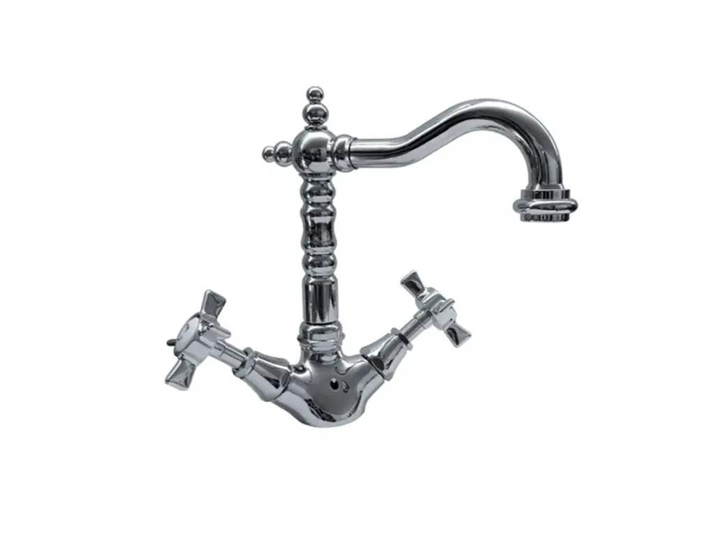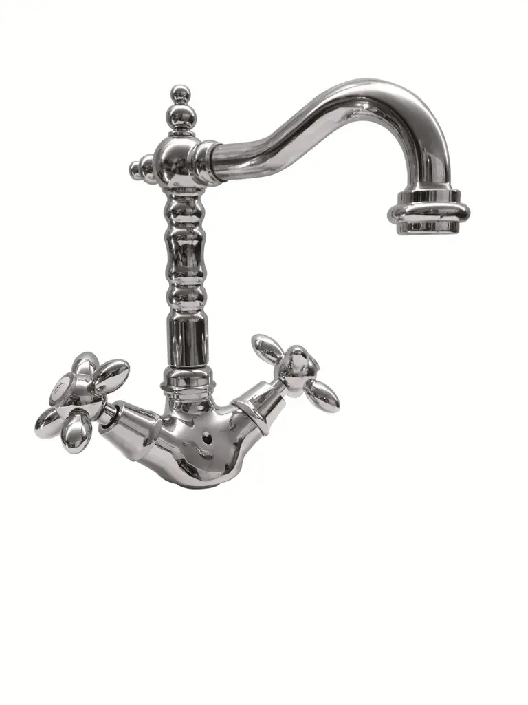 RL1043 - Washbasin Tap Mid level neck 1 hole.Large choice of high quality classic faucets in brass for washbasins with 1 or 3 holes and mixer. Several metal finishes available. Various handles available.