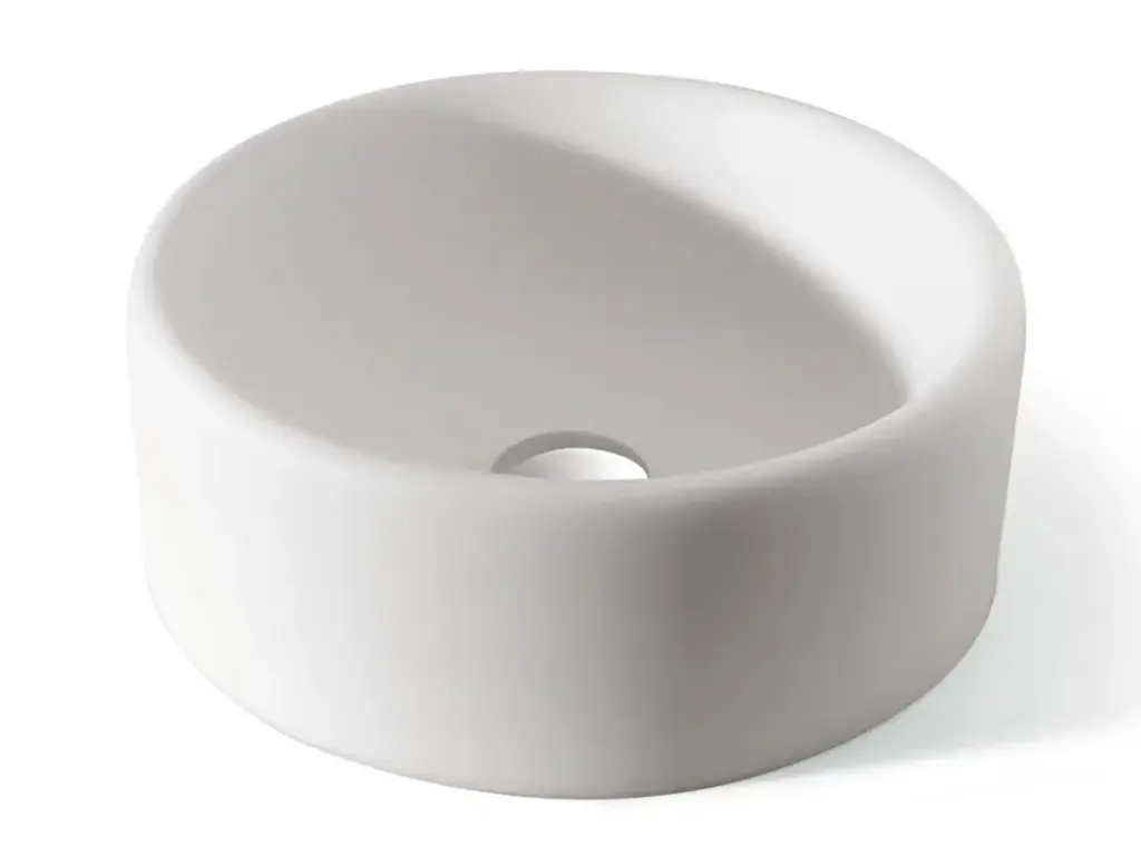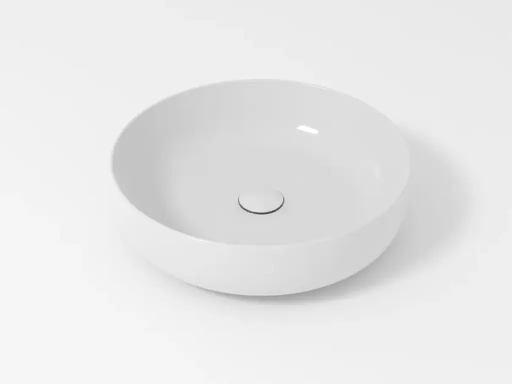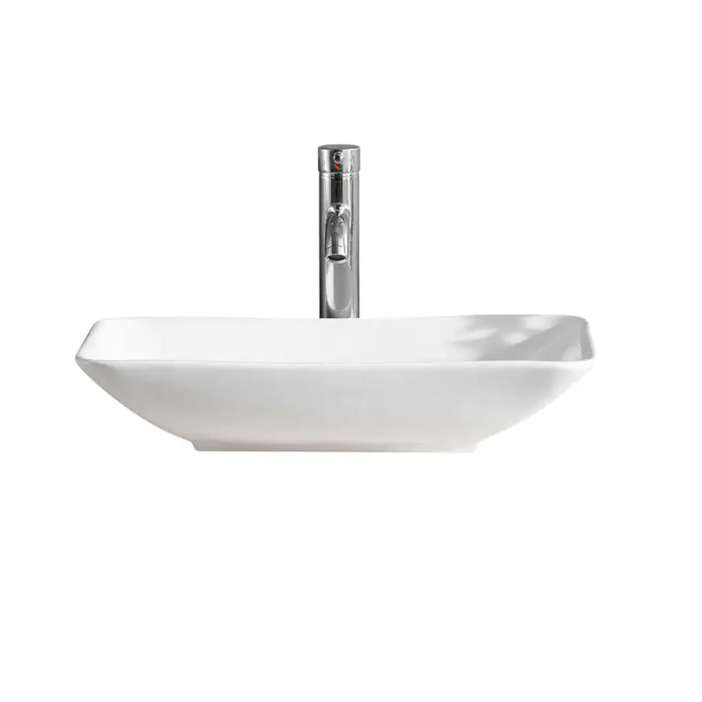 Countertop ceramic washbasin. Available in rectangular or square shape.