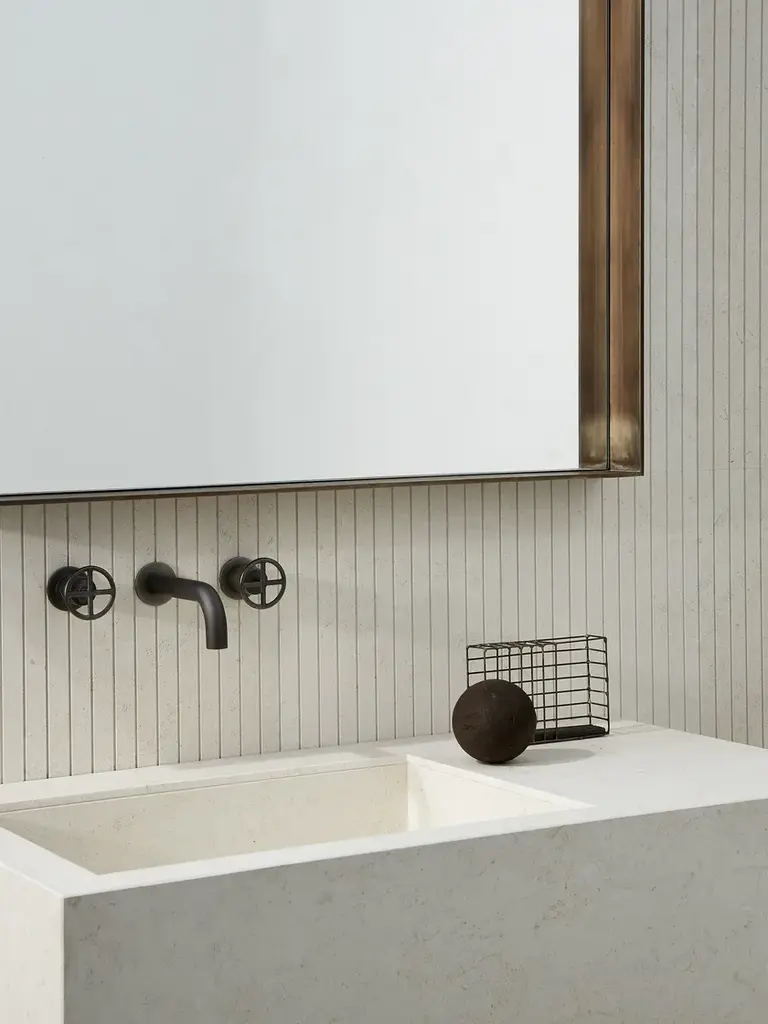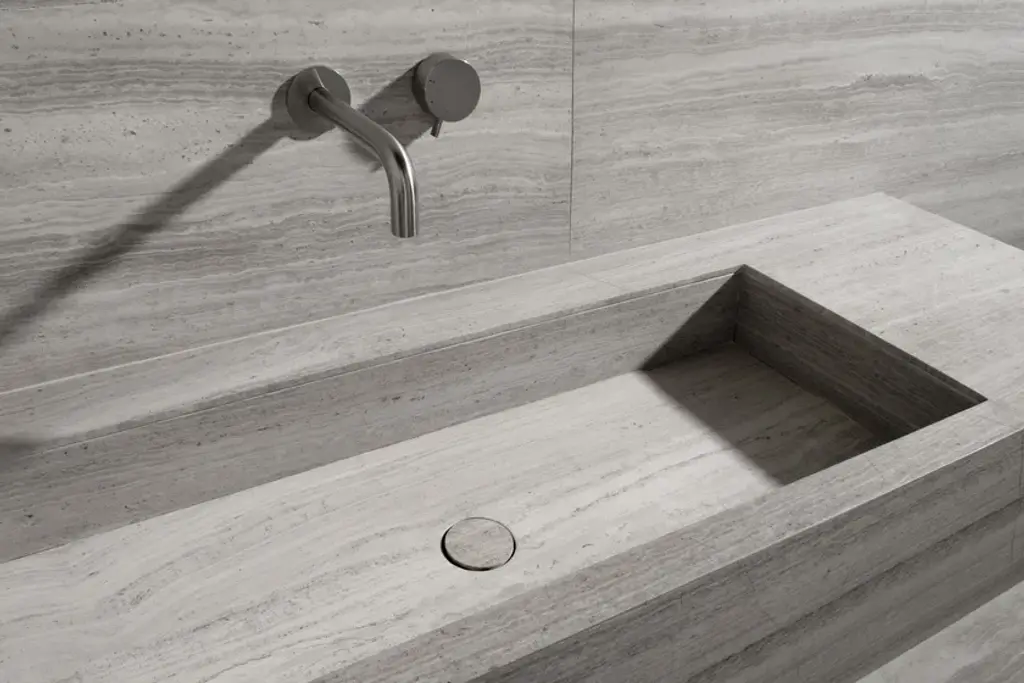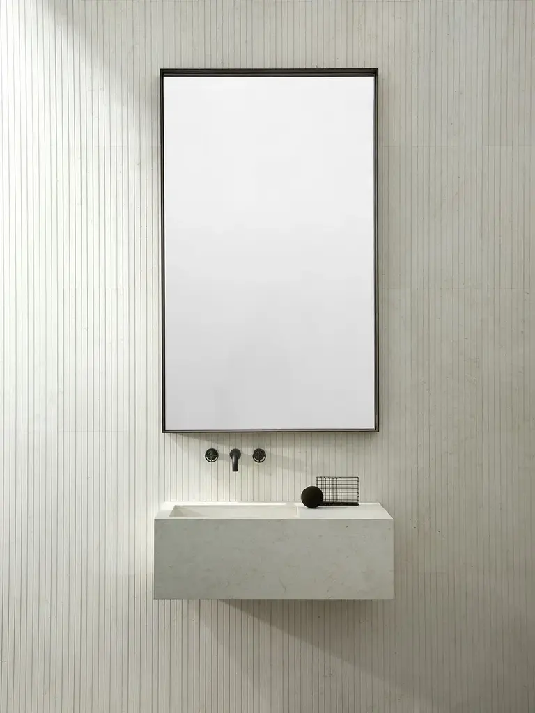 A practical and supremely simple-to-install basin, Stiletto utilises our revolutionary concept which we like to call Plug&Play simply because it really is that easy.No carpenters, no stone cutters involved, it come ready for a plumber to install with the minimum of fuss, thereby reducing time, cost and the stress of coordinating tradespeople.Taps can be deck- or wall-mounted according to preference.Available in 4 lengths in a choice of Bianco Carrara, Crema d’Orcia, Gris du Marais, Lava, Pietra d’Avola and Silk Georgette natural stones.