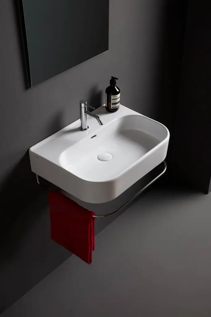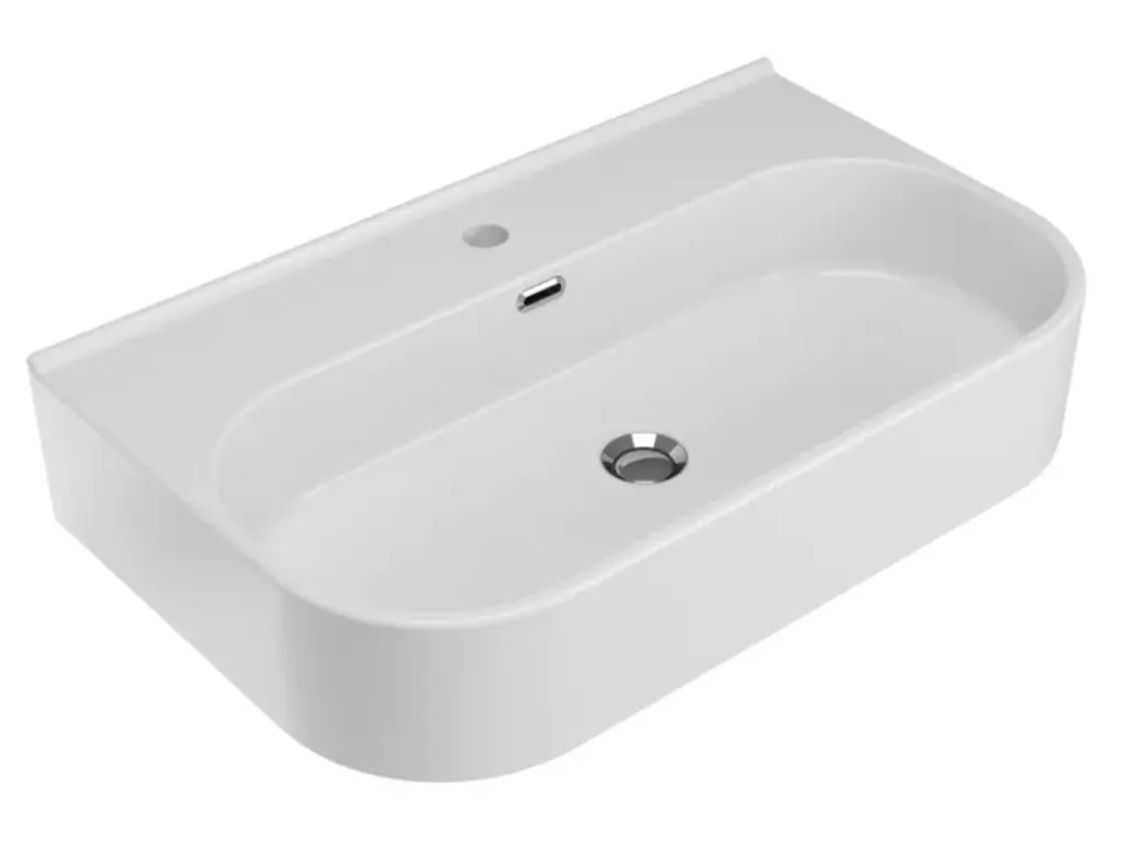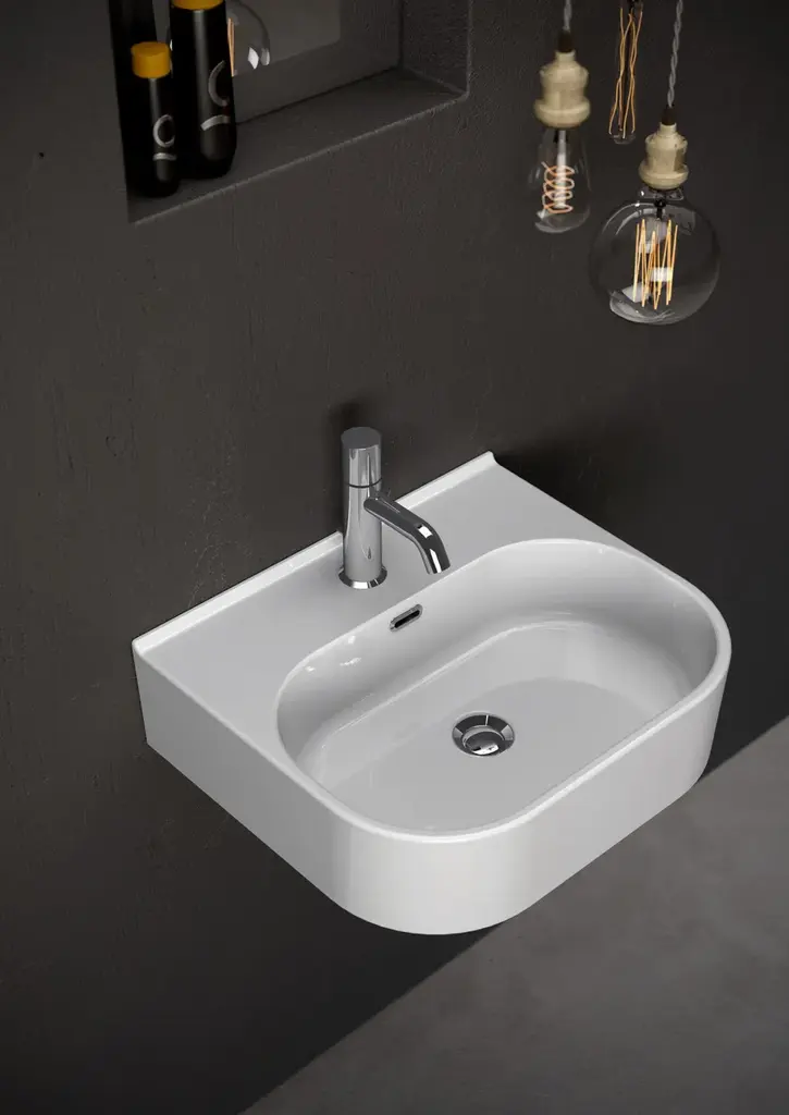 SYNTHESIS ECO is a single-hole wall hung washbasin in Fire-clay with the possibility of countertop, column or semi-column installation. Available in 3 sizes.The advantages of the suspended/countertop washbasins of the SYNTHESIS series are certainly many, starting with practicality. Being suspended from the floor, in fact, they make cleaning much easier. And always due to the lack of a column or a piece of furniture underneath, they clearly take up much less space, making them ideal for bathroomswith small dimensions without neglecting that note of design that distinguishes all Olympia brand products.Soft and clean lines, discretion and rigor notes: Synthesis ECO starts his Restyling, focus on efficiency, functionality and quality, guarantees of the Olympia Ceramica trademark decades. The synthesis ECO collection is designed to meet and satisfy the needs of a large but demanding public, both private and contract, combining quality and design with practicality and versatility, with an eye on costs. The Rimless sanitary guarantee high standard of cleaning with particular attention to water consumption, a factor on which the modern world is concentrated.