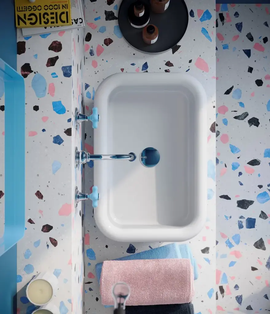 True Colors Lite TC2LA60 is a countertop rectangular ceramic washbasin.Available:- TC2LA60B: white- TC2LA60C: white inside + colour outside- TC2LA60DC: colour inside + colour outside.