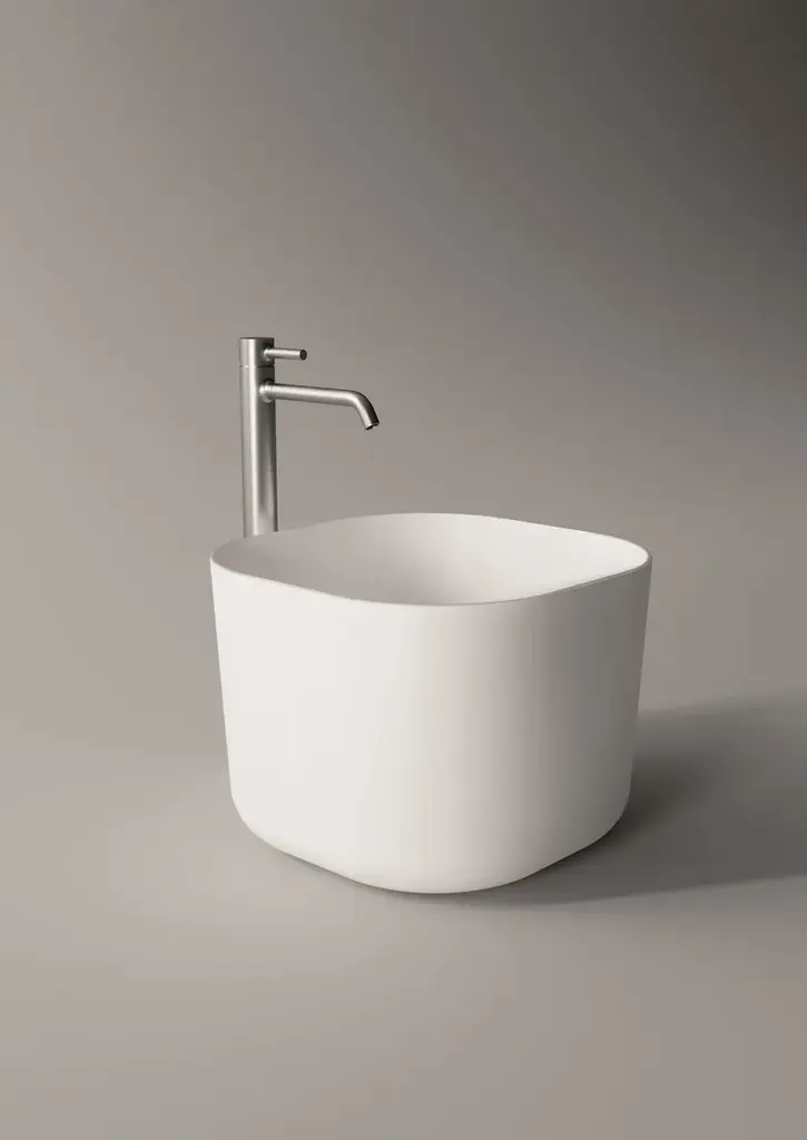 Unica is a square ceramic washbasin, available in 2 sizes.Purchasing information:Pop up plugs are not included and must be purchased separately (see product PIL06)Delicate shapes, softness and sinuosity.Alice Ceramica’s UNICA collection is a timeless solution, suitable for all styles and settings with its minimal style and its essential lines.