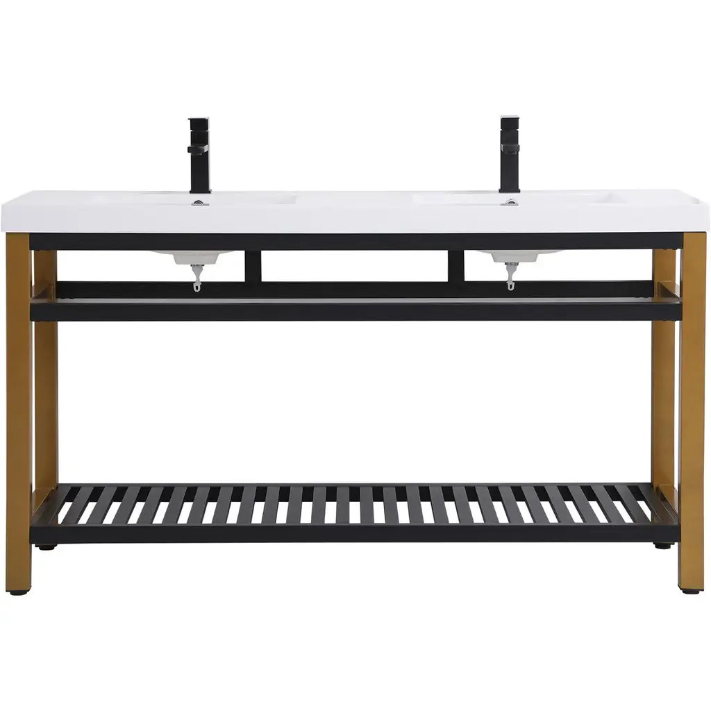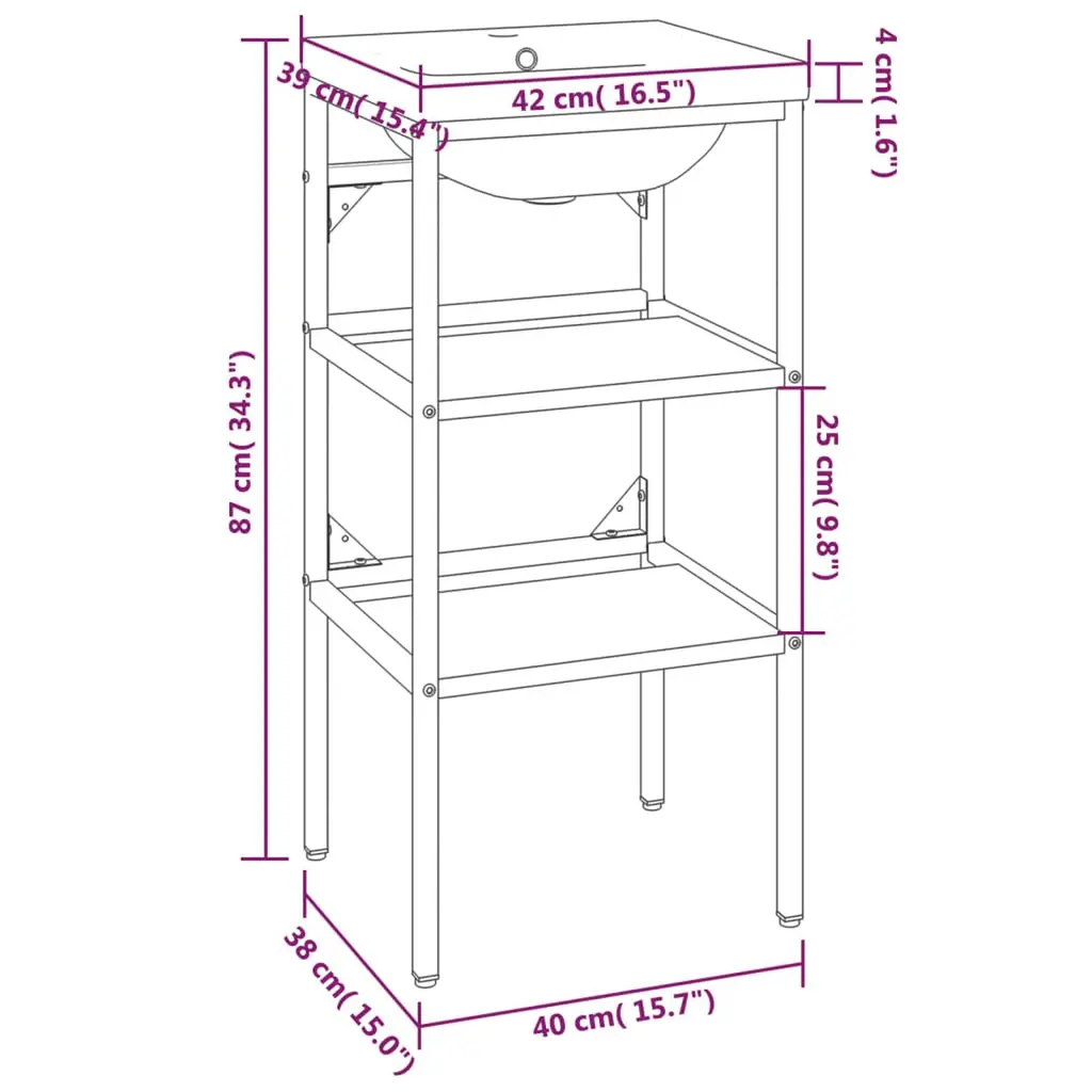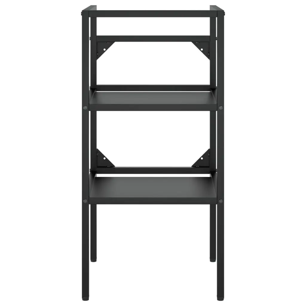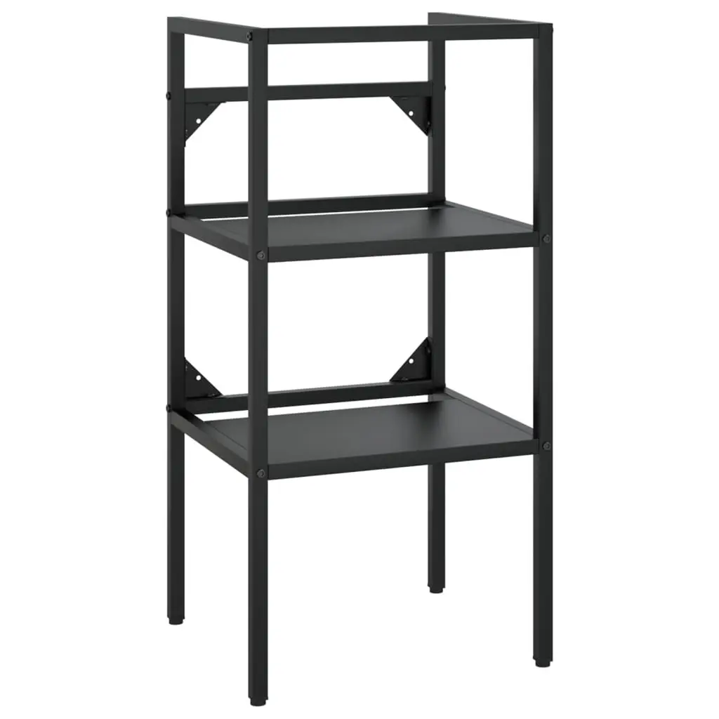 This washbasin frame combines function with contemporary design, making it a great addition to any bathroom. Made from sturdy black iron with a built-in ceramic basin, it radiates a sleek look while offering plenty of room for your personal items. Ample Storage: This washbasin frame has built-in shelves to store toiletries and essentials, keeping your space organized.Durable Construction: Made with high-quality powder-coated steel, ensuring long-lasting durability, while the smooth ceramic basin adds a refined touch.Stylish Appearance: With its modern design and sleek black finish, this washbasin frame enhances your bathroom's look, being a stylish focal point.Easy Maintenance: The wipe-clean surfaces of both the frame and basin make it simple to keep it hygienic without needing harsh chemicals.Space-Efficient: Its compact dimensions fit well in smaller bathrooms, blending functionality with modern design, suitable for everyone.