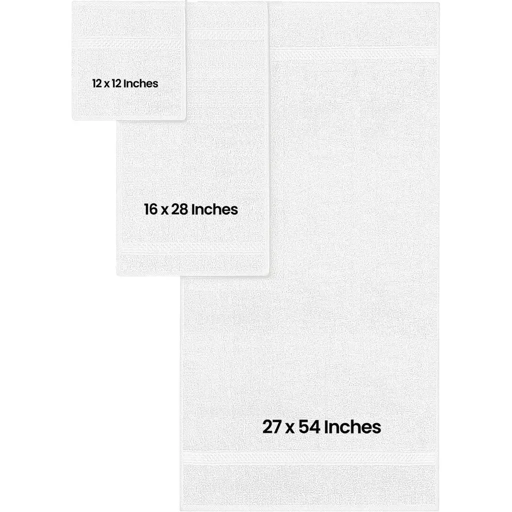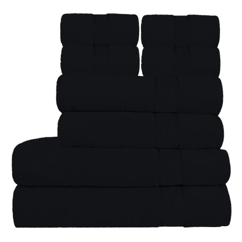 100% Cotton Absorbent 600 Gsm - 8 Piece Bathroom Towel Set - 4 Washcloths, 2 Hand Towels, 2 Bath Towels - 27''x54'' - Black