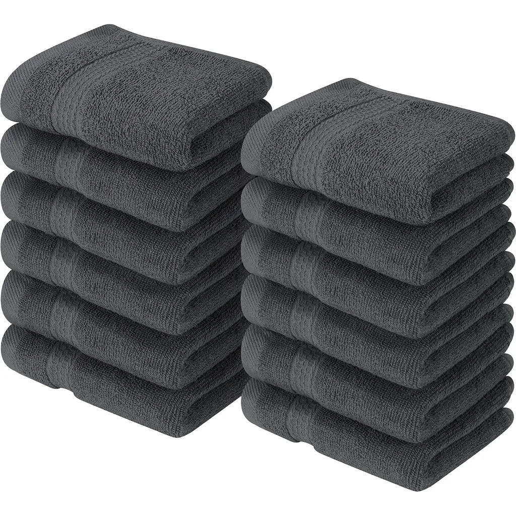 12 Pack Premium Cotton Washcloths 12x12", Soft & Absorbent, Grey - Grey