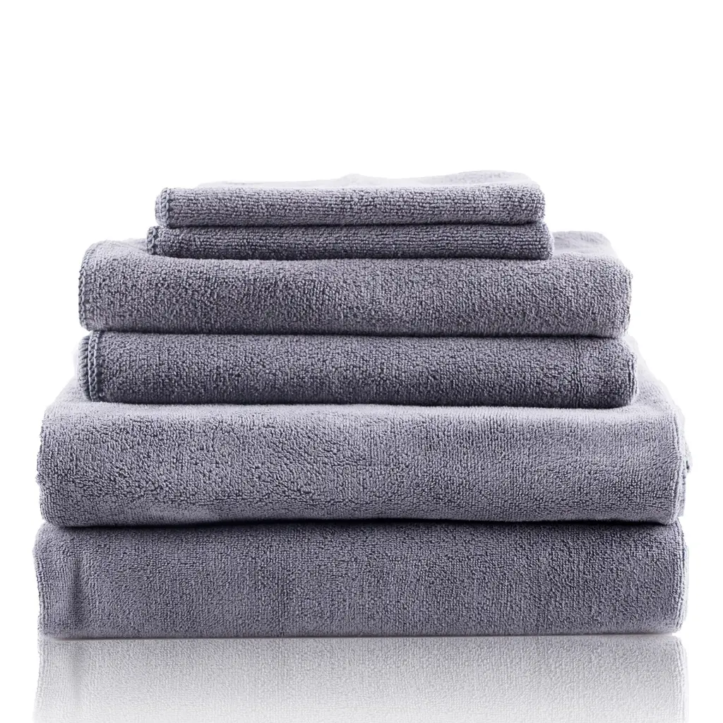 JML Microfiber towels Set are made of microfiber material, which feels soft and lightweight than a regular towel. And our 6 Pieces of Microfiber towel can be used for many different purposes, such as bath towels, sports towels, washcloths, car washing towels, and pet bath towels. These towels are highly absorbent, they can absorb 7 times their weight in water, which makes them dry quickly. This antibacterial towel can also be used as a sports towel to wipe perspiration, giving you a more comfortable environment to exercise. Please Note: Because computer monitors vary, the actual bath towel colors may appear differently from the picture on your monitor (often slightly lighter or darker).Material: 100% Microfiber, 400gsm, Fade, Shed, Wrinkle, and Shrink Resistant6 Pieces towel sets includes 2 x bath towels (30"x60"), 2 x hand towels (18"x30") and 2 x washcloths (13"x13").Ultra-soft, non-abrasive, our microfiber cloths will bring you comfortable touching and will not scratch surfaces.EASY CARE: Hand or Machine Wash is ok, Tumble Dry on Medium Heat. All fiber towels will lose softness due to long time use or cleaning, suggest adding a little fabric softener while washing