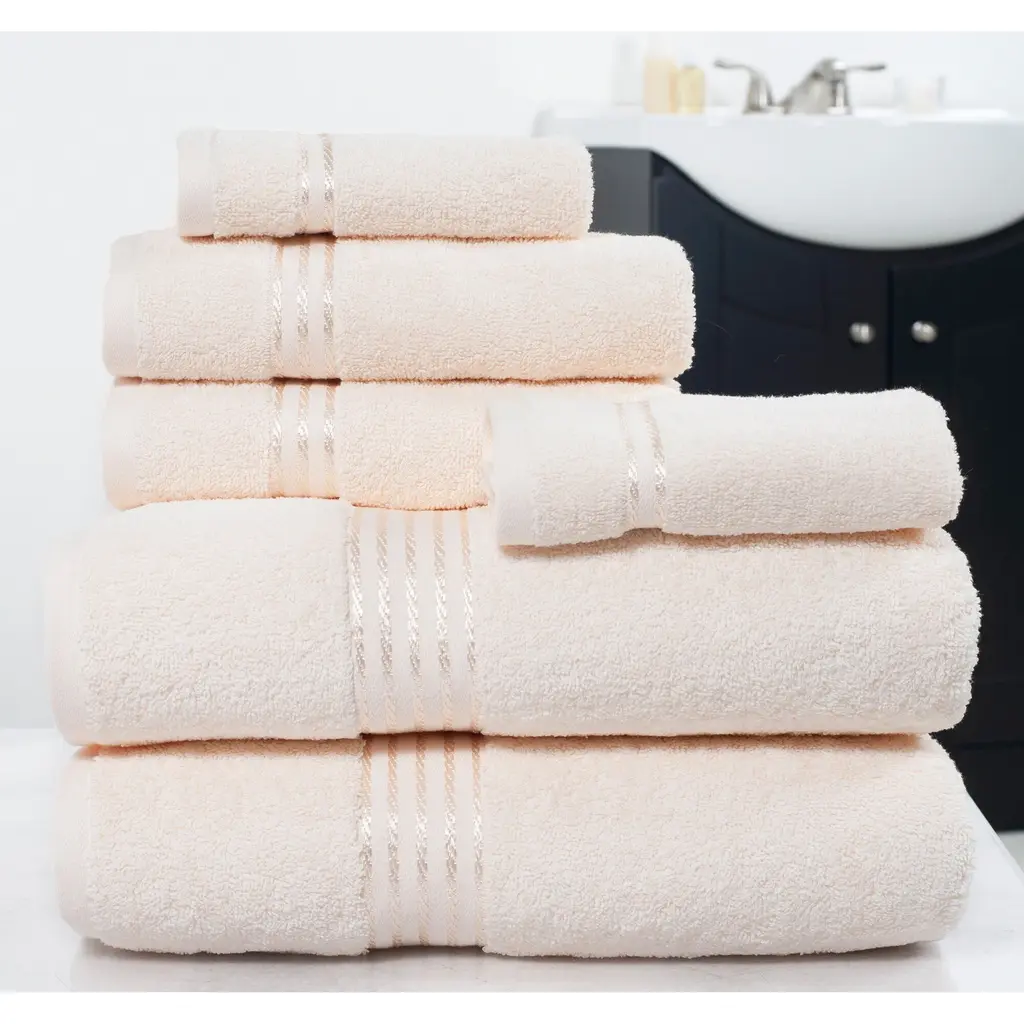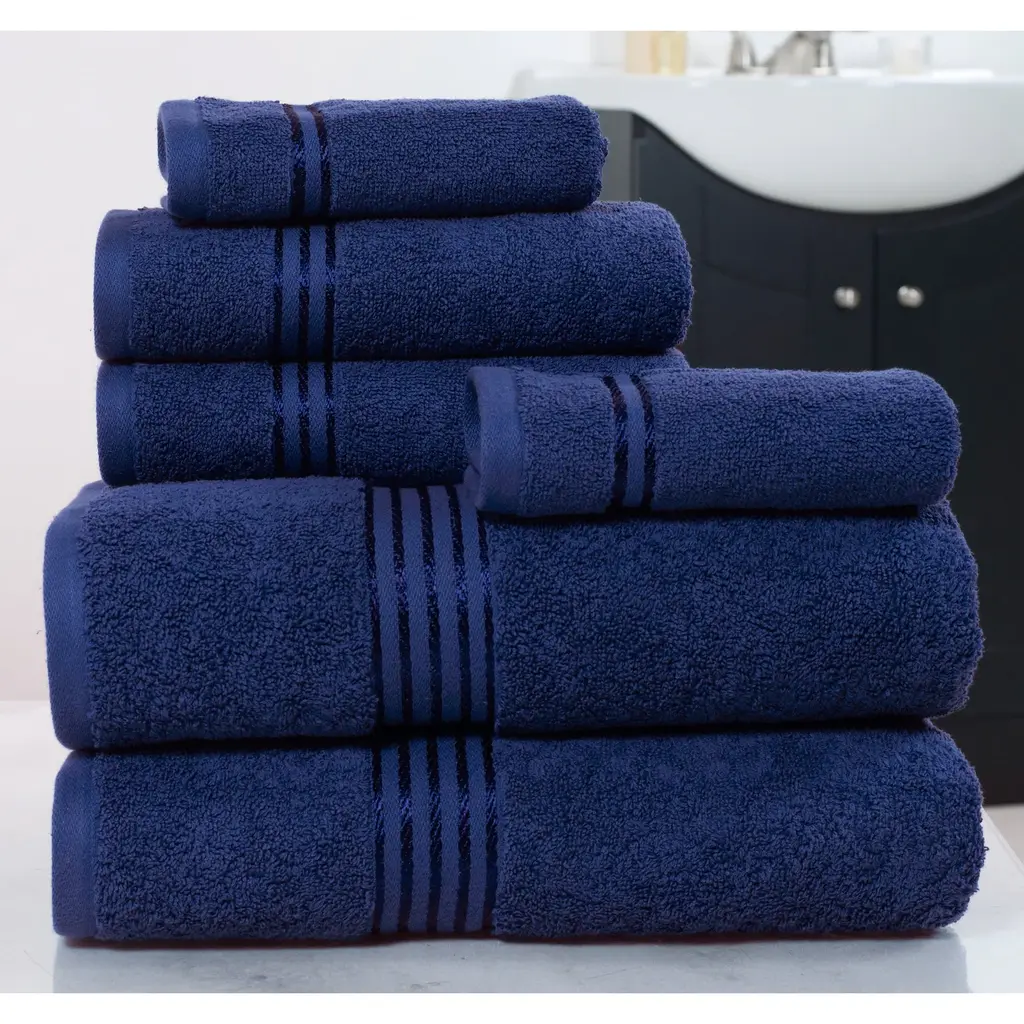 Bring spa quality luxury to the comfort of your own bathroom with the 6-Piece Bath Towel Set by Windsor Home. These super soft and plush towels for bathroom are made from 100-percent cotton with a pleasing terry cloth weave type that is designed for maximum absorption. This set includes 2 bath towels, 2 bathroom hand towels, and 2 washcloths, perfect for your primary, guest, or en suite bathroom. BATH TOWELS SET OF 6 - This 6-piece bath towels set comes with 2 bath towels, 2 hand towels for bathroom, and 2 washcloths with an understated striped detail with a glossy hue that adds depth to the look of these luxurious linens.COTTON COMFORT - Made from only the finest 625 GSM cotton with a terry cloth weave, this bathroom towel set offers excellent absorbency. The loop construction of these cotton towels helps them wick away moisture quickly, so you can start your day.SOFT AND COMFORTABLE - The bathroom towels are soft and provide plenty of warmth, all while remaining breathable, for a comfortable addition to your main or guest bath. The fluffy feel of each towel will help turn your washroom into a spa-like experience.MACHINE WASHABLE - These large bath towels are machine washable for your convenience — simply wash the bathroom essentials before first use, wash warm with like colors, do not use bleach, and tumble dry low.PRODUCT DETAILS - Materials: 100% Cotton and 625 GSM. Dimensions: Bath Towel: (L) 54.5” x (W) 28”; Hand Towel: (L) 28.5” x (W) 16.5”; Washcloth: (L) 13.5” x (W) 13.5”. 6-Piece-Set. Made in India.