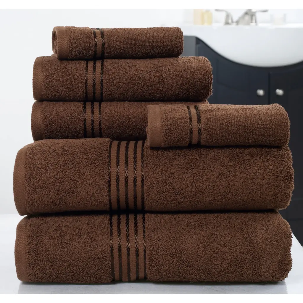 6Pc Towel Set - Cotton Bathroom Accessories With 2 Bath Towels, 2 Hand Towels, And 2 Washcloths By Windsor Home - Chocolate