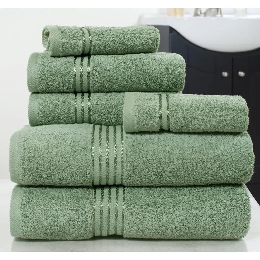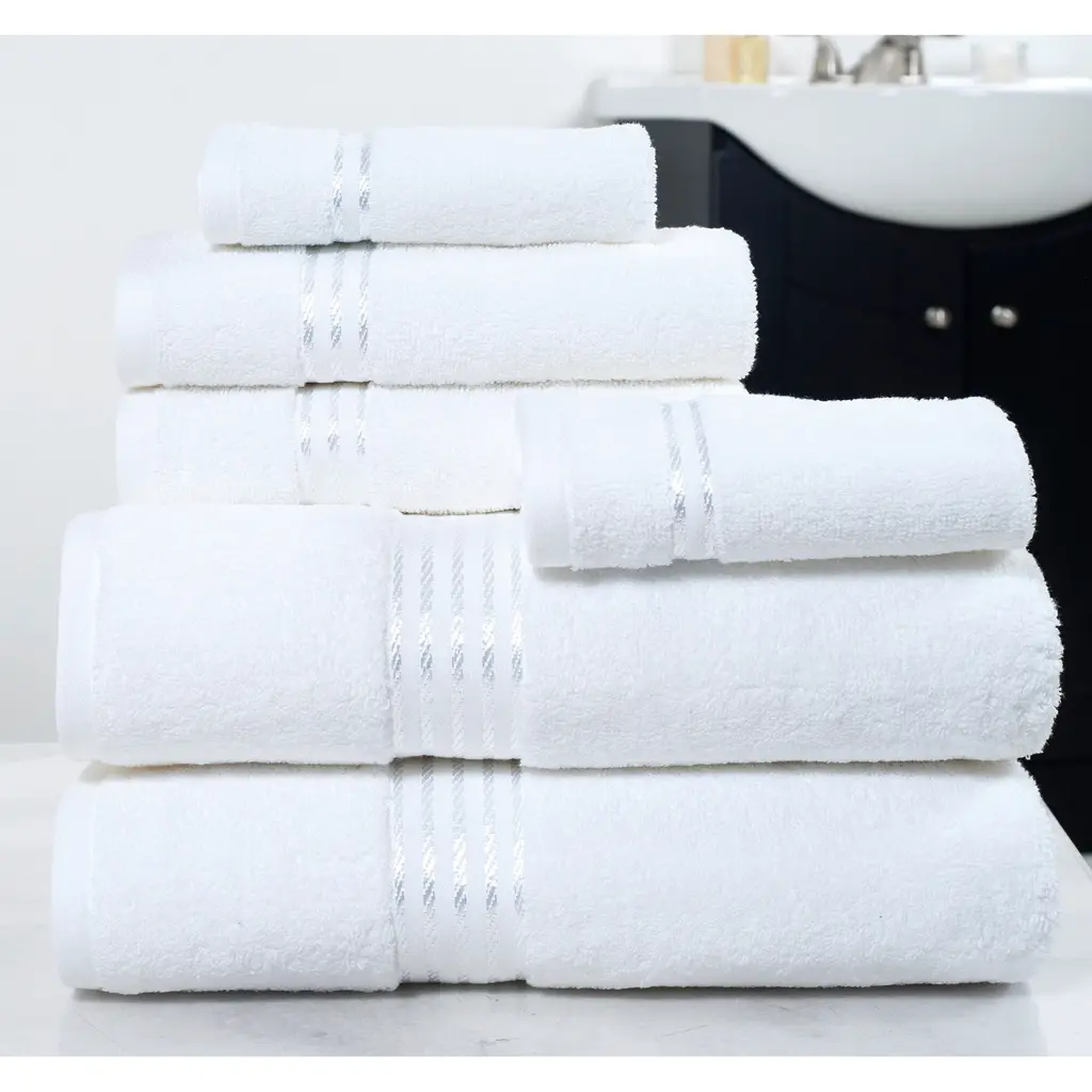 Bring spa quality luxury to the comfort of your own bathroom with the 6-Piece Bath Towel Set by Windsor Home. These super soft and plush towels for bathroom are made from 100-percent cotton with a pleasing terry cloth weave type that is designed for maximum absorption. This set includes 2 bath towels, 2 bathroom hand towels, and 2 washcloths, perfect for your primary, guest, or en suite bathroom. BATH TOWELS SET OF 6 - This 6-piece bath towels set comes with 2 bath towels, 2 hand towels for bathroom, and 2 washcloths with an understated striped detail with a glossy hue that adds depth to the look of these luxurious linens.COTTON COMFORT - Made from only the finest 625 GSM cotton with a terry cloth weave, this bathroom towel set offers excellent absorbency. The loop construction of these cotton towels helps them wick away moisture quickly, so you can start your day.SOFT AND COMFORTABLE - The bathroom towels are soft and provide plenty of warmth, all while remaining breathable, for a comfortable addition to your main or guest bath. The fluffy feel of each towel will help turn your washroom into a spa-like experience.MACHINE WASHABLE - These large bath towels are machine washable for your convenience — simply wash the bathroom essentials before first use, wash warm with like colors, do not use bleach, and tumble dry low.PRODUCT DETAILS - Materials: 100% Cotton and 625 GSM. Dimensions: Bath Towel: (L) 54.5” x (W) 28”; Hand Towel: (L) 28.5” x (W) 16.5”; Washcloth: (L) 13.5” x (W) 13.5”. 6-Piece-Set. Made in India.