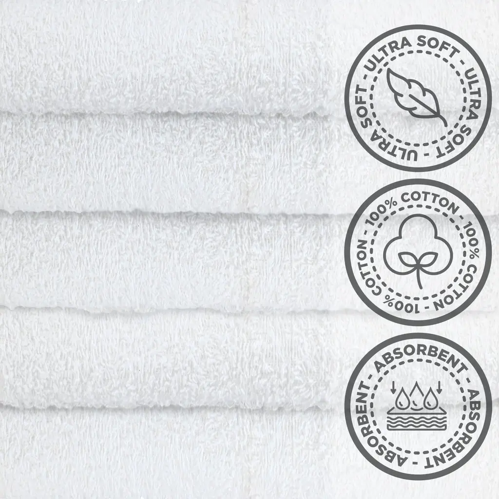 8 Pack Cotton Washcloths - 12"x12" Soft & Absorbent Towels, White - White