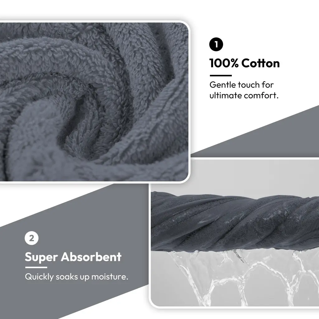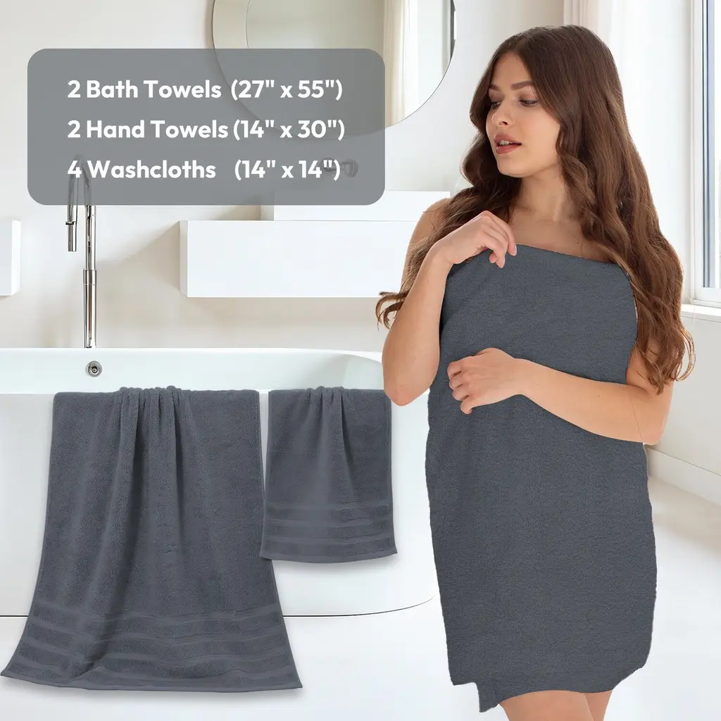 8 Piece Cotton Bath Towel Set,highly Absorbant Towels,2 Bath Towels,2 Hand Towels And 4 Washcloths - Grey