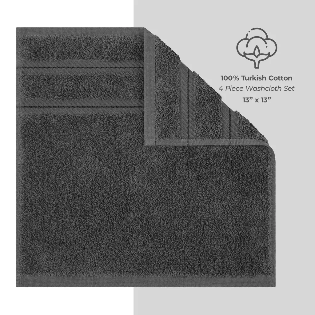 American Soft Linen Premium 100% Cotton 4-Piece Washcloth Set - Grey