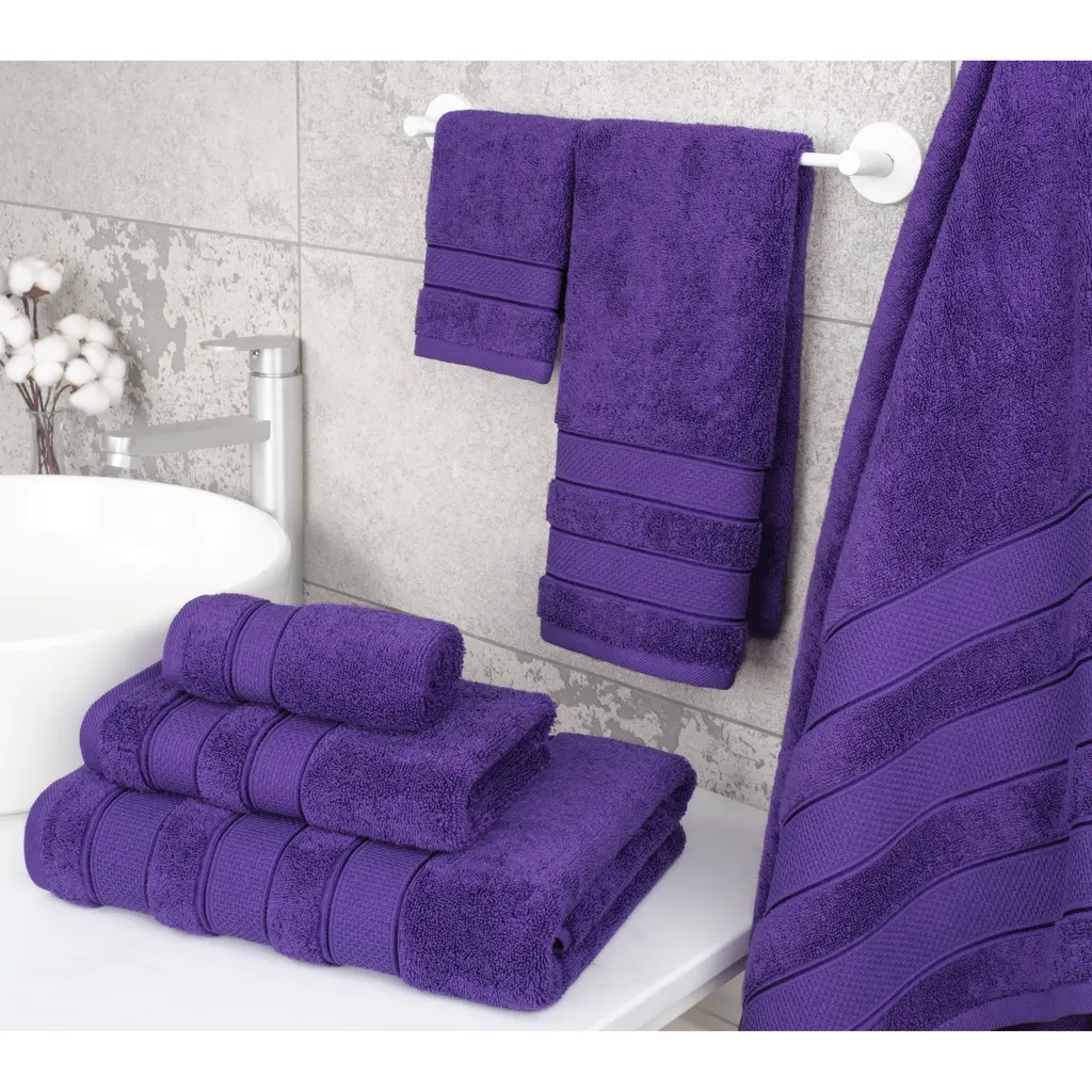 American Soft Linen Salem Bath Towel Set, 6 Piece Towels For Bathroom Large 100% Cotton 2 Bath Towels 2 Hand Towels 2 Washcloths - Purple
