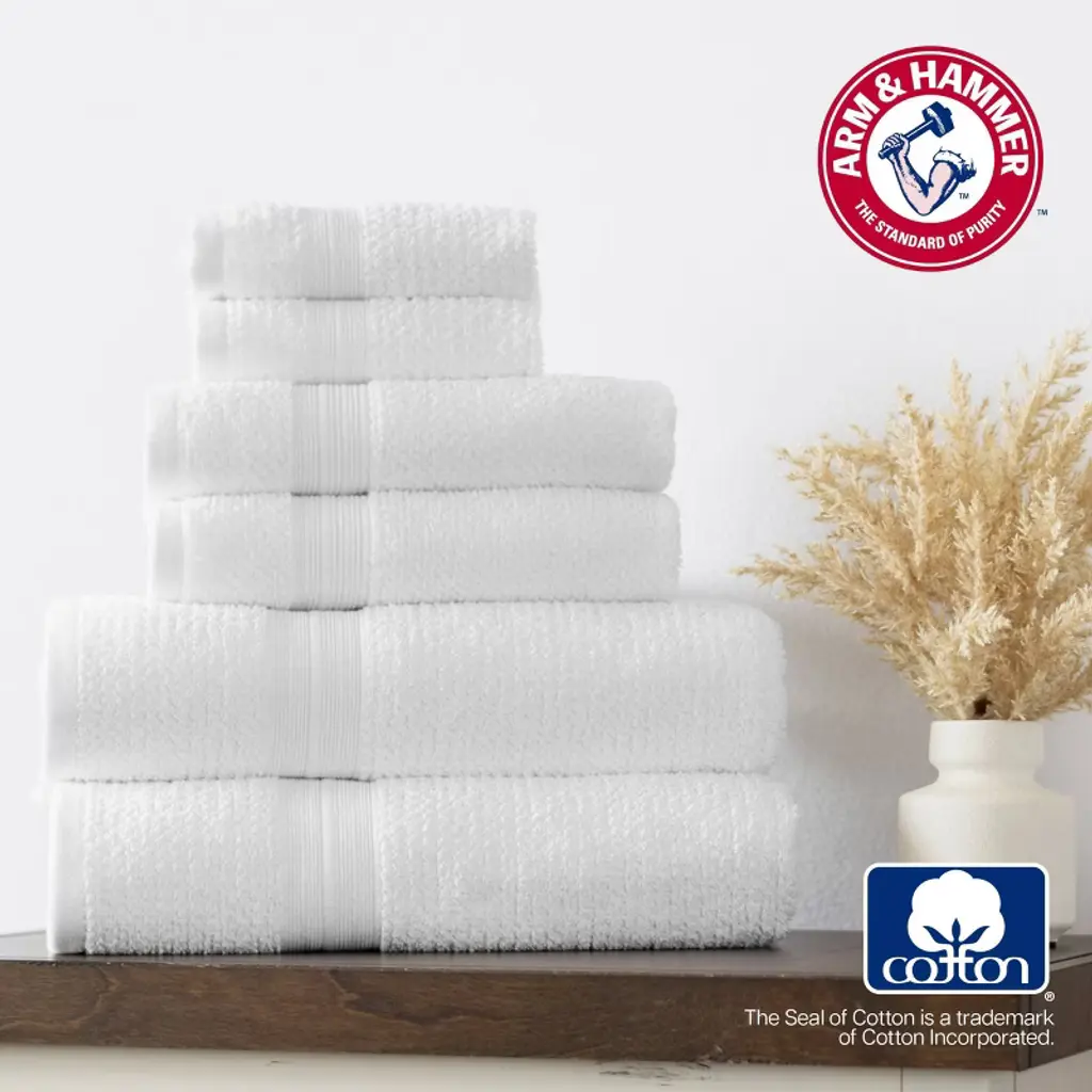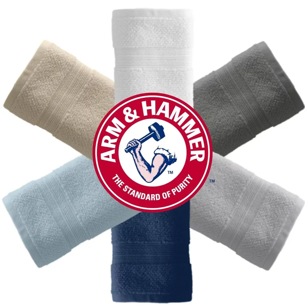 Experience the enduring luxury and convenience of Arm & Hammer™ Quick Dry Towel Set. Crafted from 100% premium cotton, these towels dry fast in the dryer, with lasting softness and low lint performance. They maintain their pristine appearance with ease. Our built-in antimicrobial protection ensures these towels stay fresher for longer, effectively resisting mildew odors. Elevate your daily routine with towels that deliver exceptional performance and the trusted quality of the Arm & Hammer™ brand.