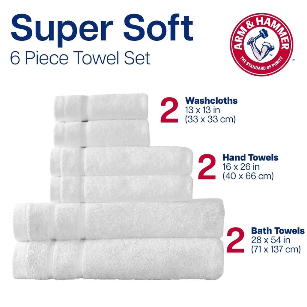 Arm & Hammer 6Pc Super Soft Set Bath Towels And Hand Towels With Washcloths Dark Blue