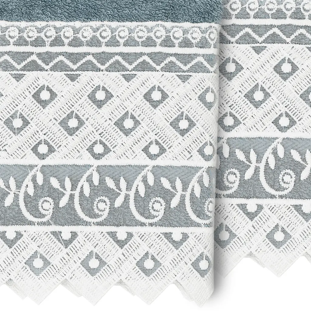 Authentic Hotel And Spa 100% Turkish Cotton Aiden 2Pc White Lace Embellished Washcloth Set - Teal