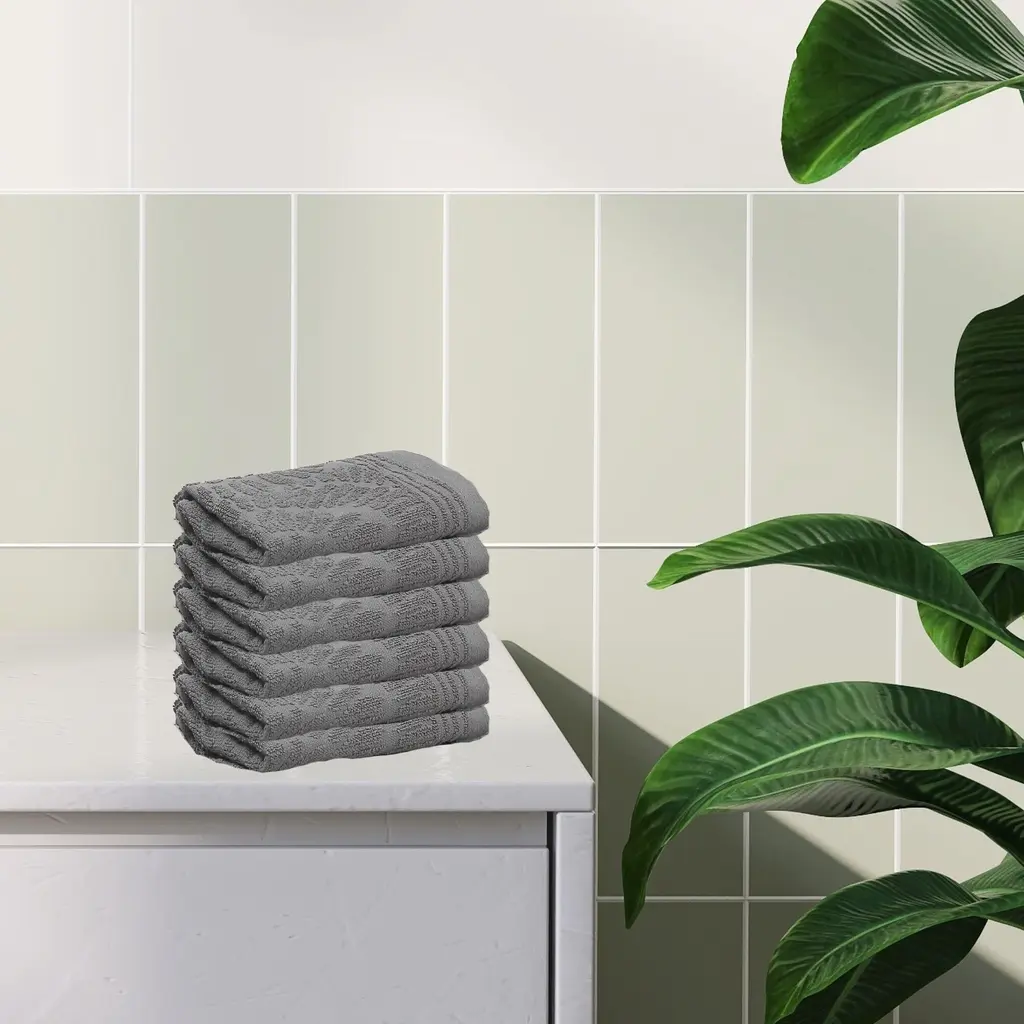 Charleston Wash Cloth 12" X 12" Light Grey - Set Of 6 - Grey