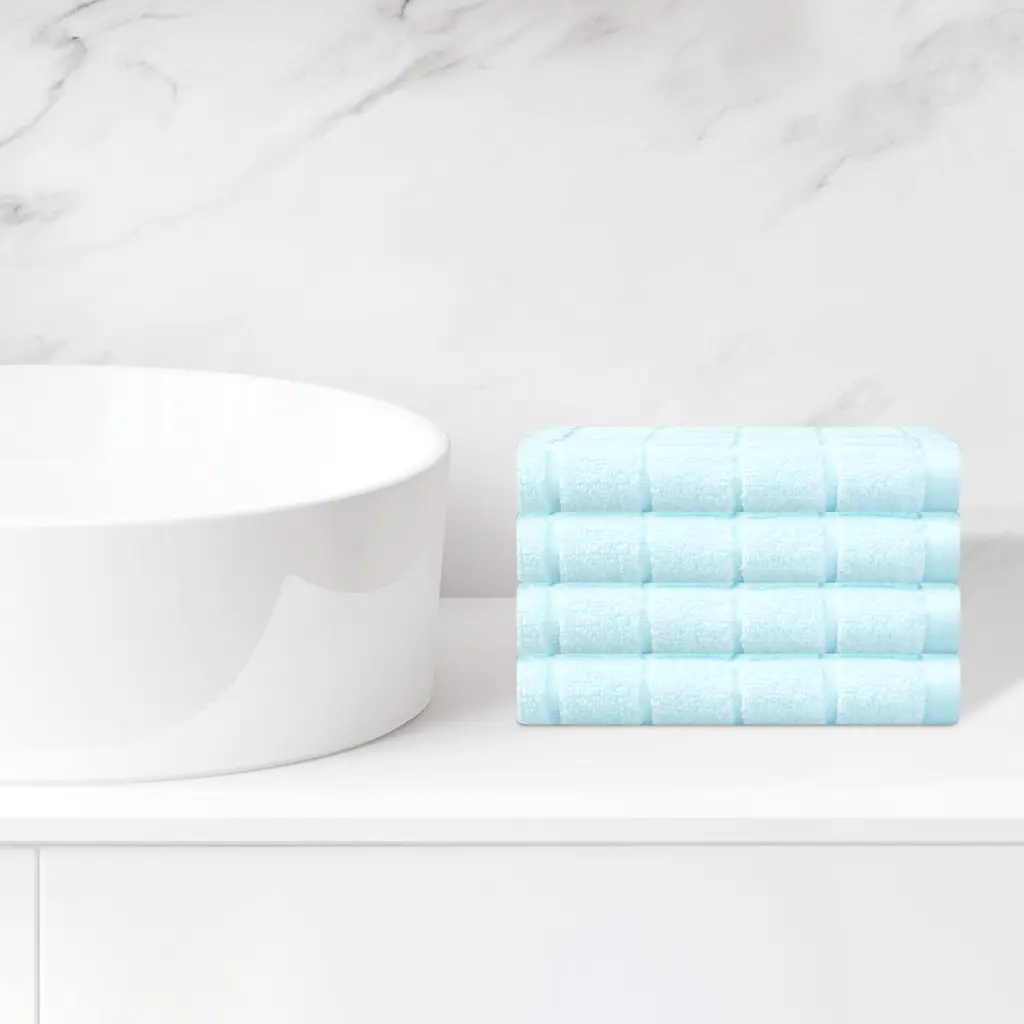 Cotton Face Cloths, Plaid Pattern Washcloths Set, Highly Absorbent And Fast Drying Towels For Bathroom 13" X 13" - Blue - 4 Pack
