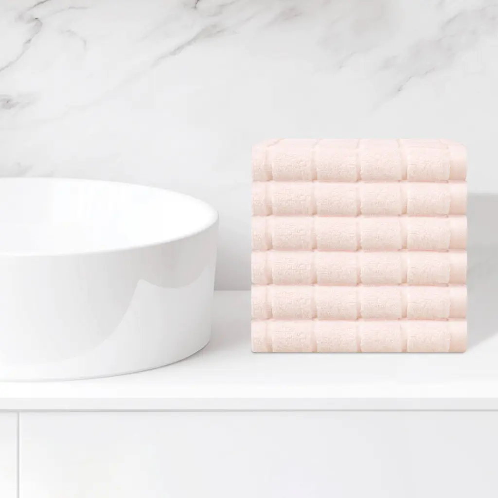 Cotton Face Cloths, Plaid Pattern Washcloths Set, Highly Absorbent And Fast Drying Towels For Bathroom 13" X 13" - Pink - 6 Pack
