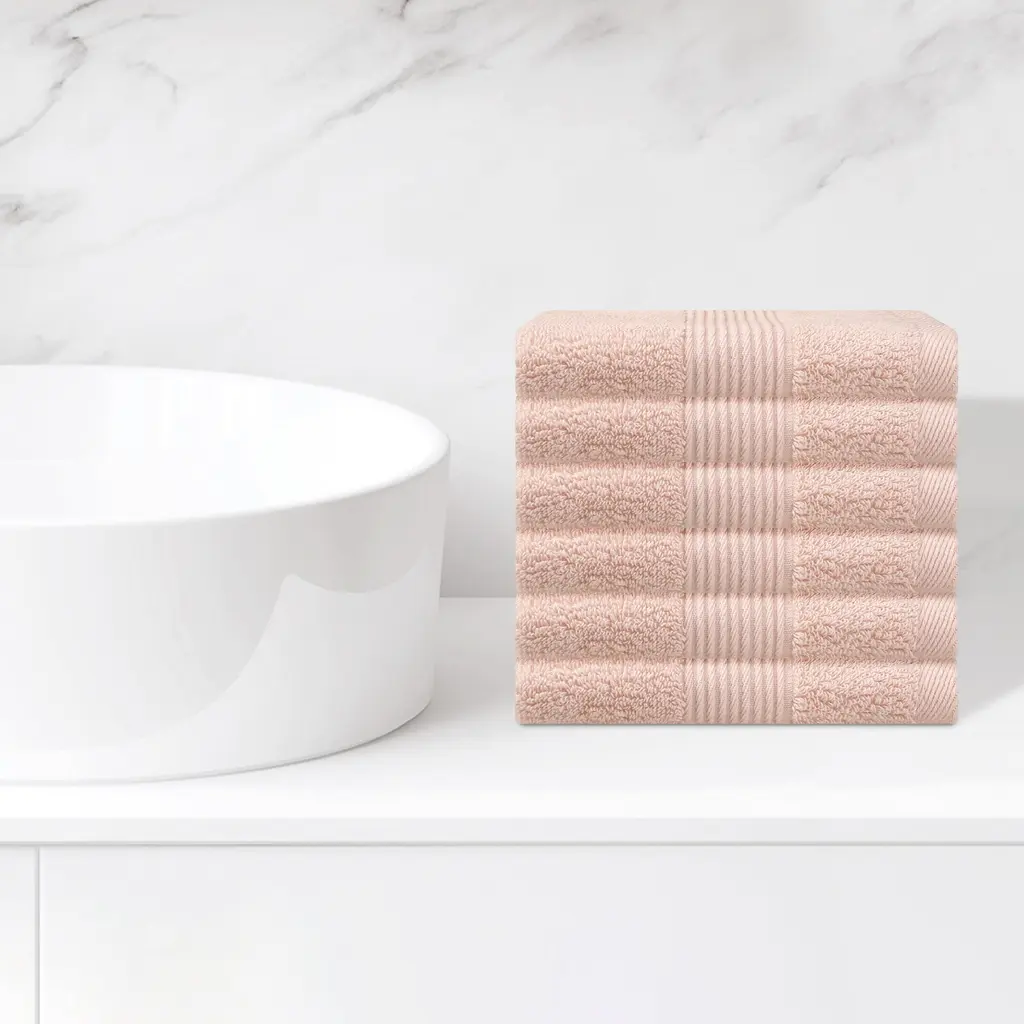 Cotton Wash Cloths For Face, Striped Face Cloths, Highly Absorbent And Lightweight Towels For Bathroom, Hotel, Spa 13" X 13" - Pink - 6 Pack
