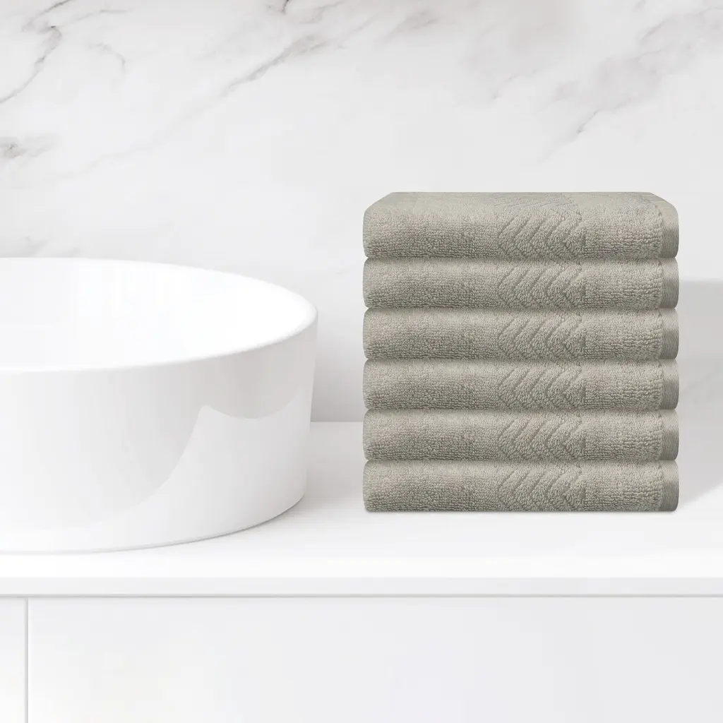 Cotton Washcloths Set, Highly Absorbent Face Towels, Multi-Purpose Wash Cloths For Bathroom 13" X 13" - Light Brown - 6 Pack