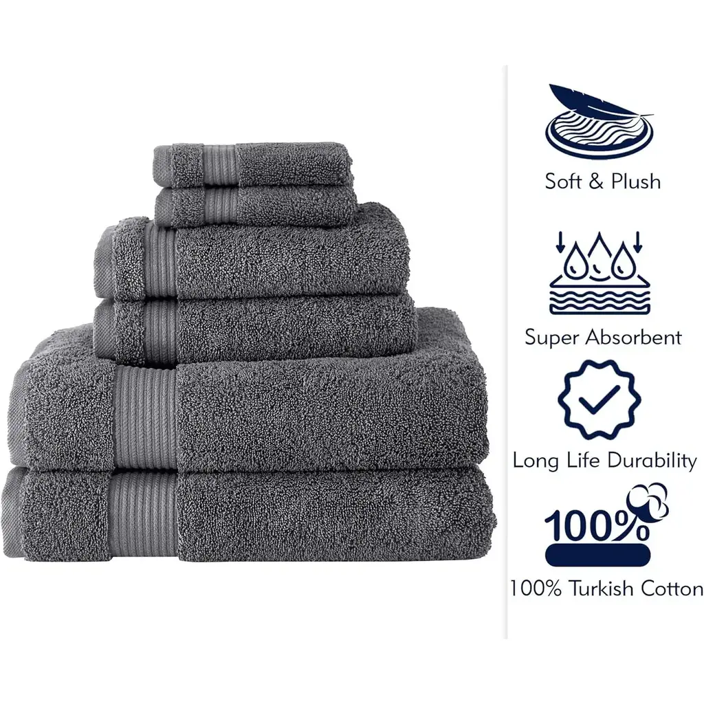Ctt - 6 Pcs Turkish Cotton Towel Set, Includes 2 Bath Towels, 2 Hand Towels And 2 Washcloths, Quick Dry & Absorbent - Grey