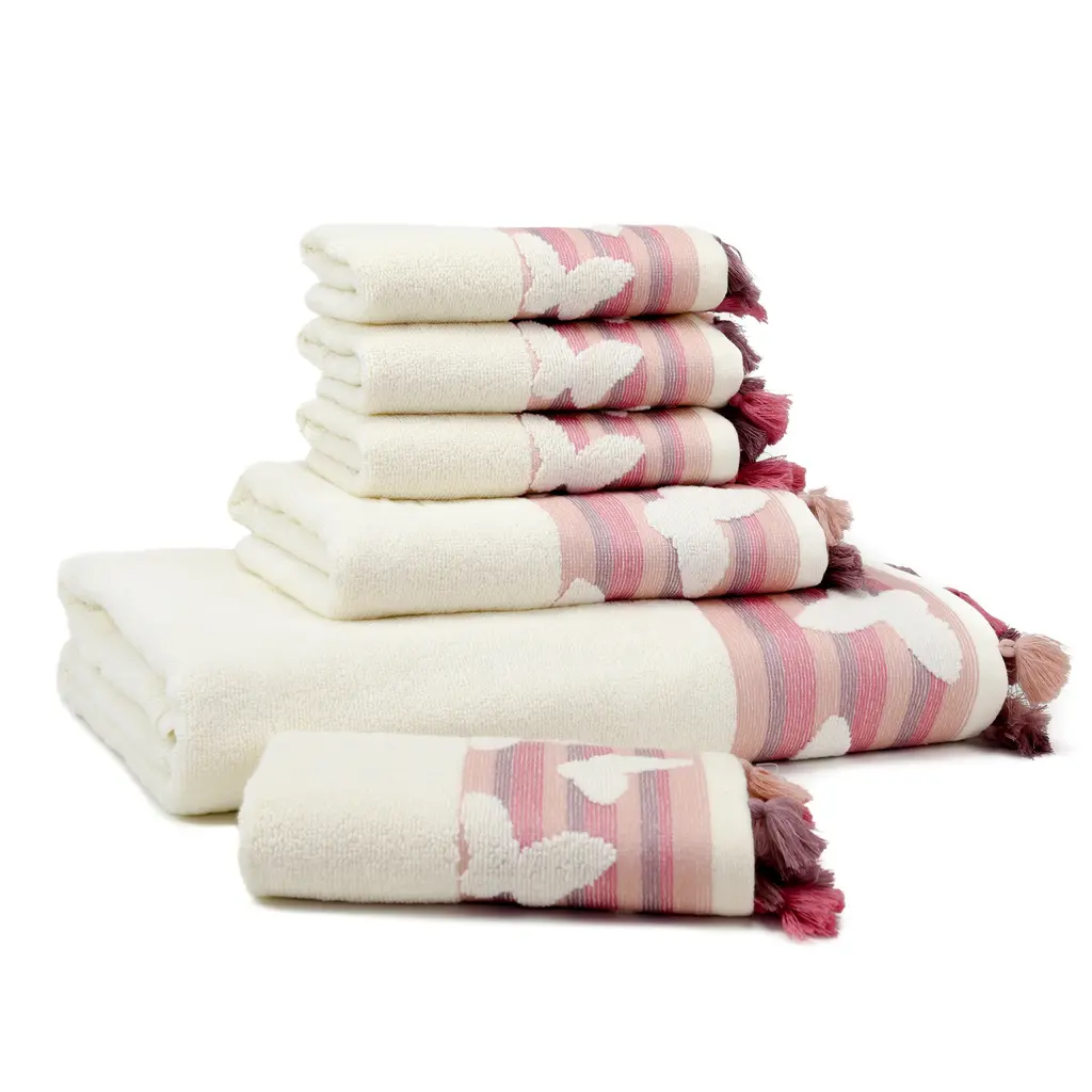 East'n Blue Butterfly Turkish Cotton Bath Towel Set (Set Of 6) - (1 Bath Towel, 1 Hand Towel, 4 Washcloth) - Peach