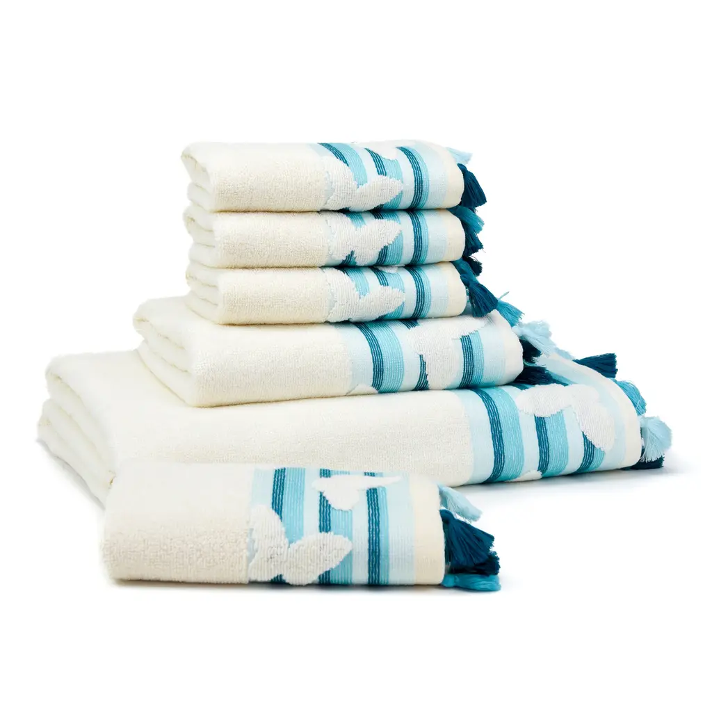 Feel the touch of butterfly with the Butterfly Turkish Cotton Towel In the capable hands of hardworking Turkish women, premium quality Turkish cotton becomes your trustworthy companion in your bathroom. Famous for its softness, Butterfly Turkish Cotton Towels take care of you and your family's precious skin. This pure cotton towel set features elegant Turkish-inspired patterns offering you the best bathroom experience. They will fit into your home easily with various color options. Luxurious yet convenient Butterfly Turkish Cotton Towel set come with great price for those who demand great value from every purchase. Its practical nature allows Butterfly Turkish Cotton Towels to dry quickly making it perfect for households, for beach outings, and for travel. With its 650 GSM tough construction this luxurious Turkish towel set is made to last for longer. Thanks to its high absorbency, form and softness properties, these towels that adapt to all areas of life are worth every cent you spend. Find the hue that best suits your unique taste and preference or your bath decor.