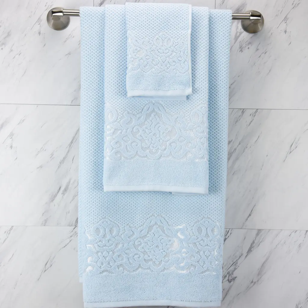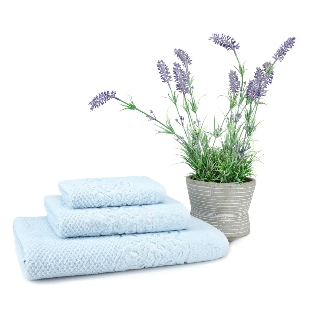 East'n Blue Galata Turkish Cotton Bath Towel Set (Set Of 3) - (1 Bath Towel, 1 Hand Towel, 1 Washcloth) - Ice Blue